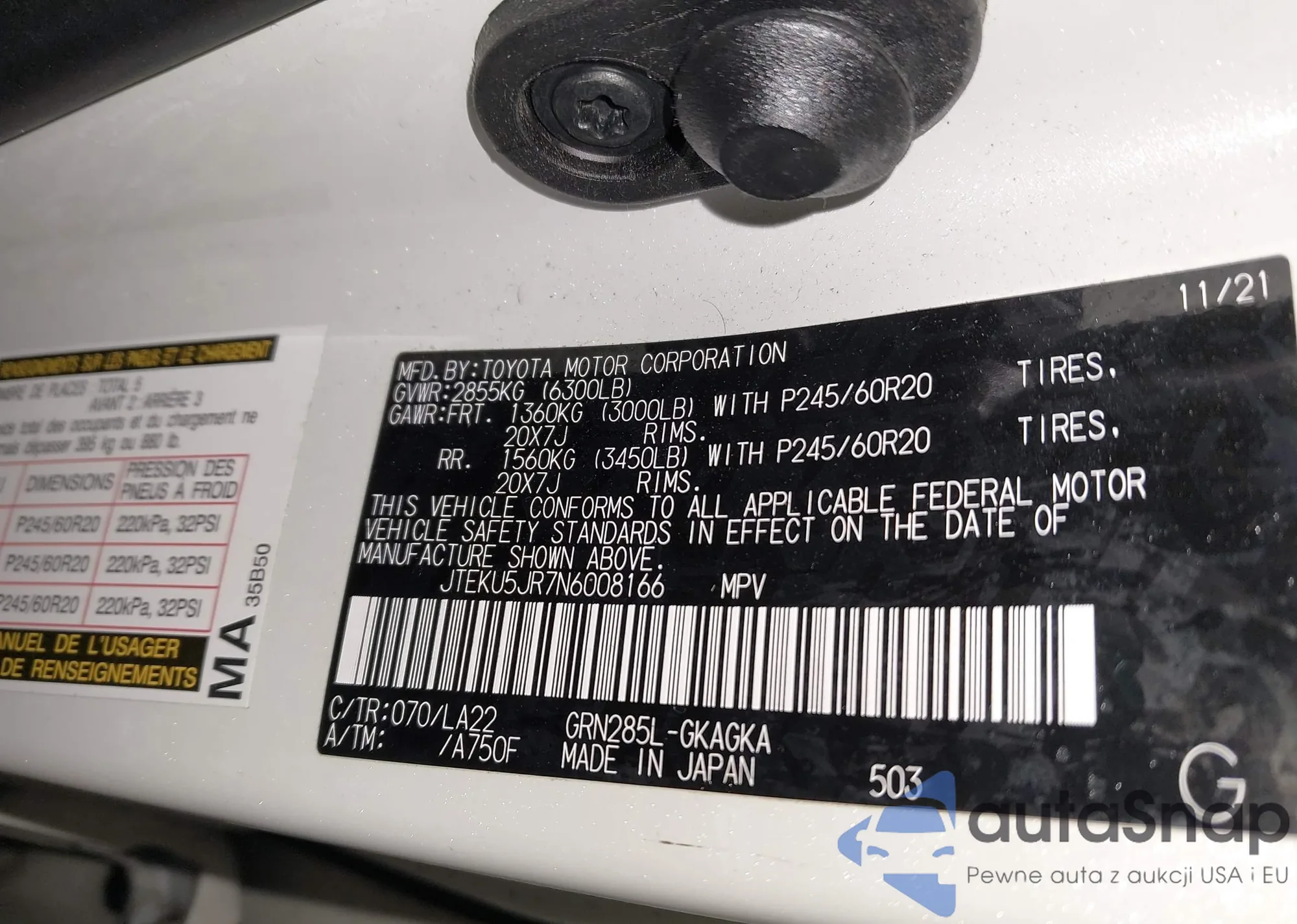 LOT: 44454783 VIN: JTEKU5JR7N6008166