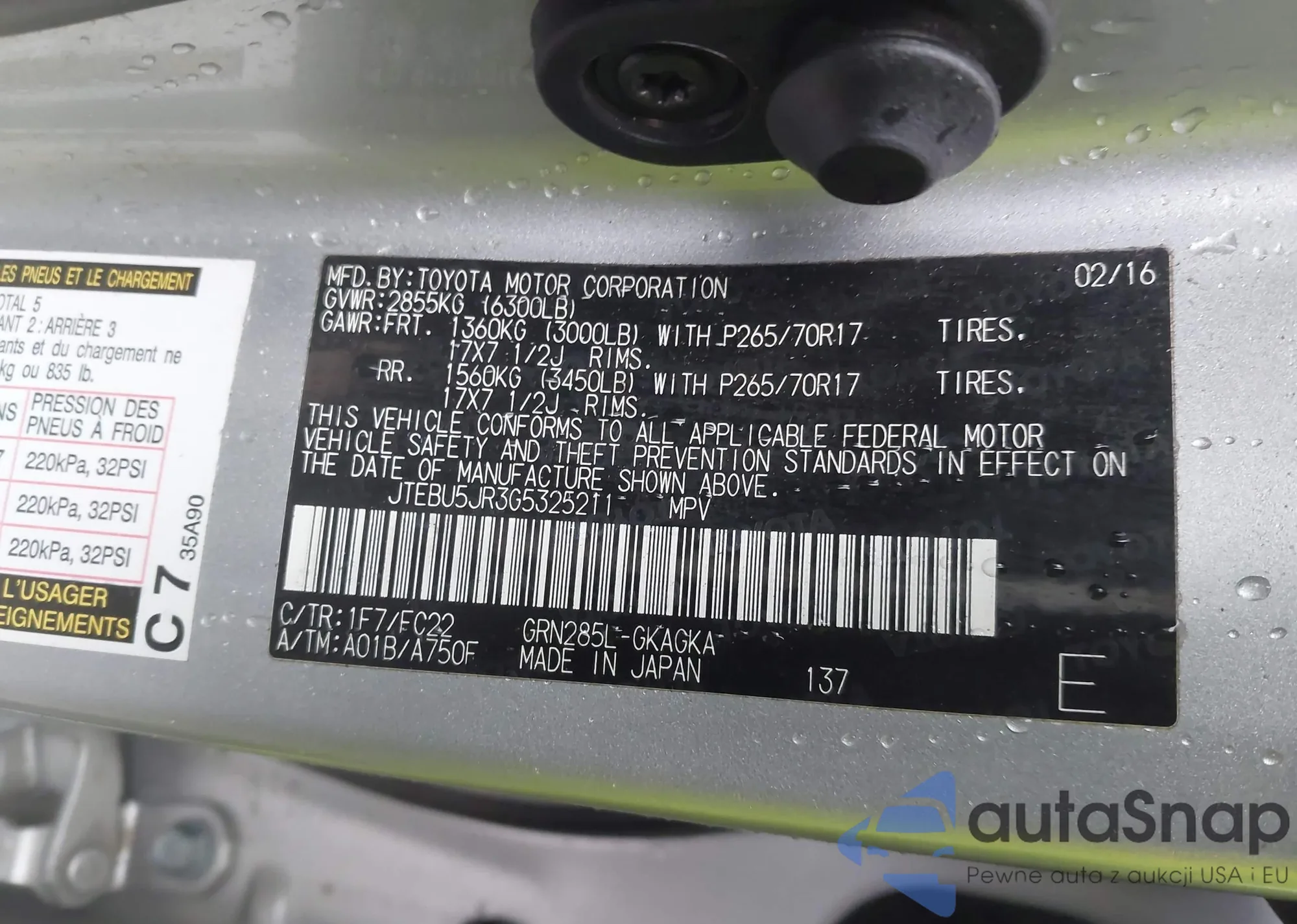 LOT: 43536774 VIN: JTEBU5JR3G5325211