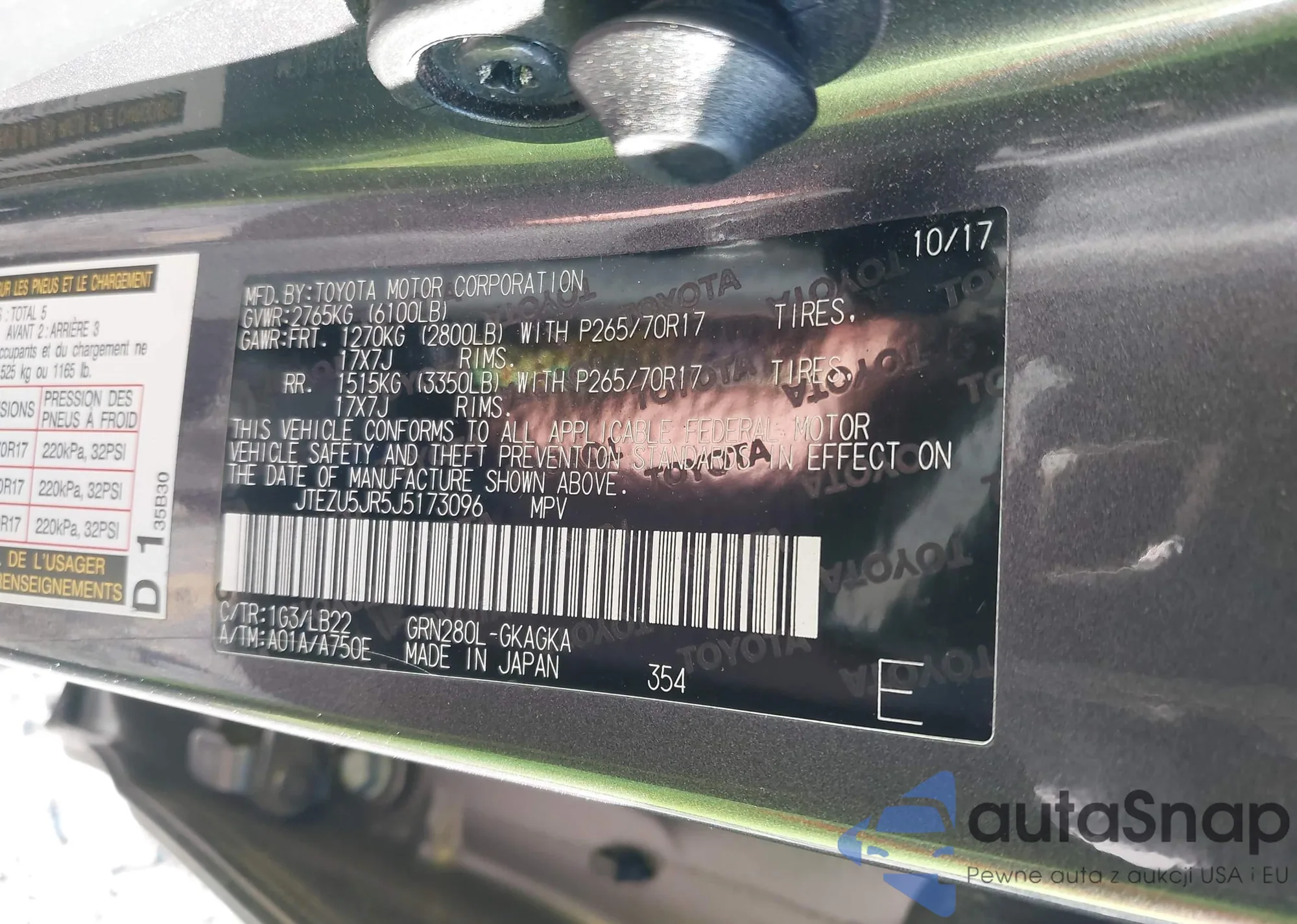 LOT: 43663423 VIN: JTEZU5JR5J5173096