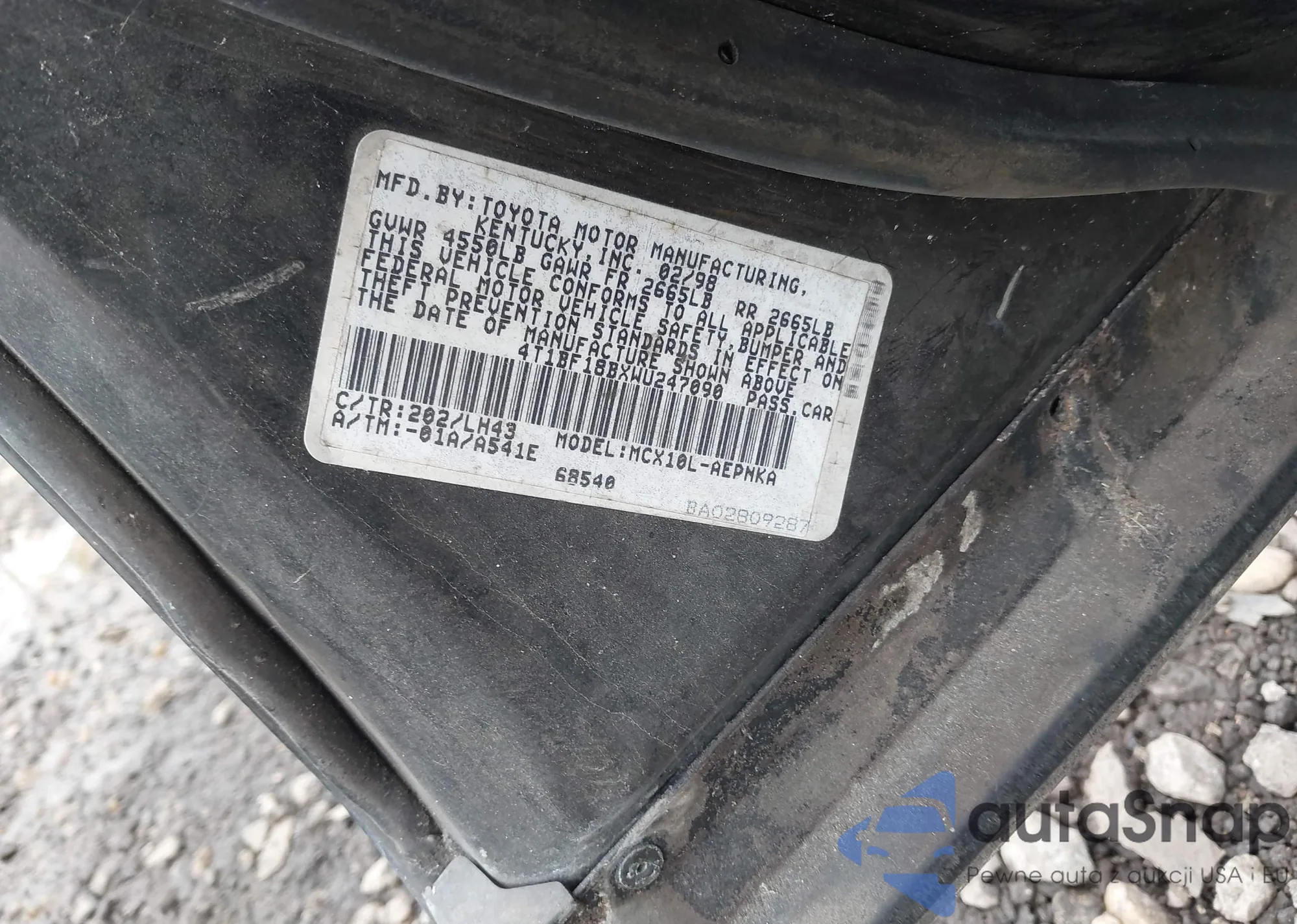 LOT: 43486838 VIN: 4T1BF18BXWU247090