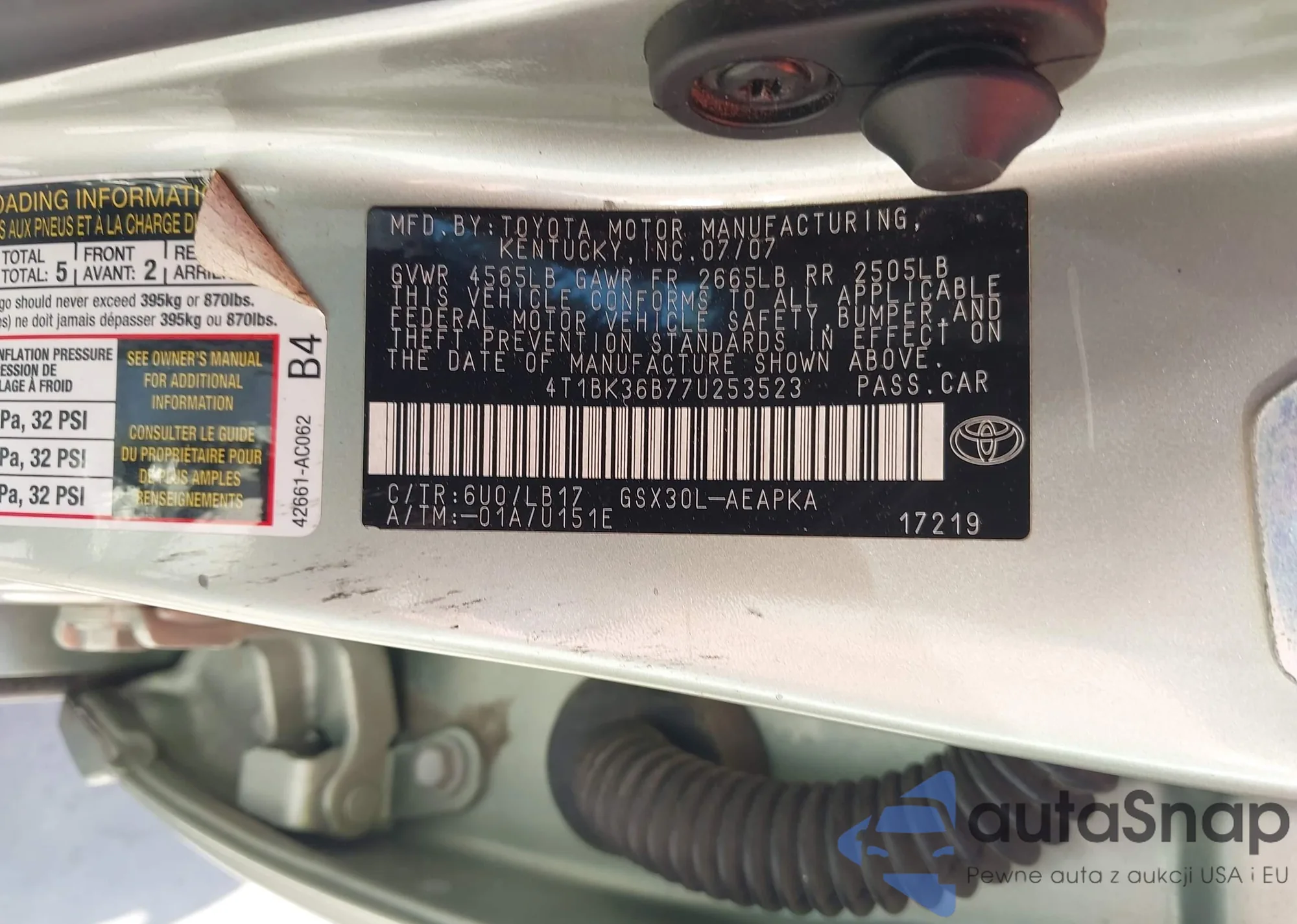 LOT: 43335683 VIN: 4T1BK36B77U253523