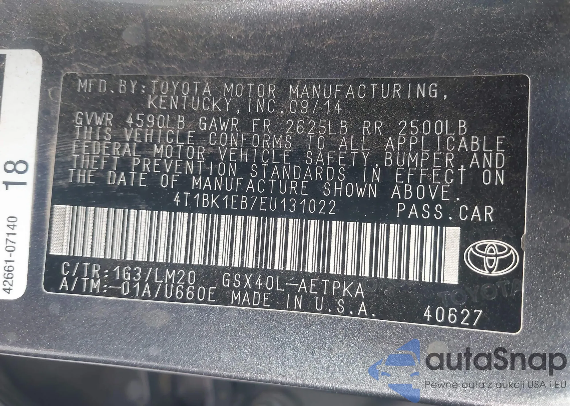 LOT: 43763899 VIN: 4T1BK1EB7EU131022