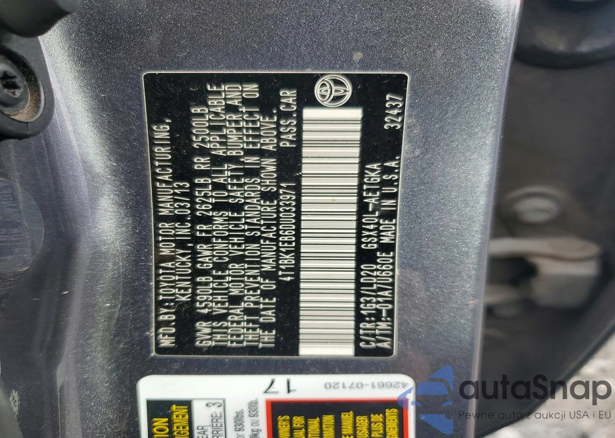• VIN 4T1BK1EB6DU033971