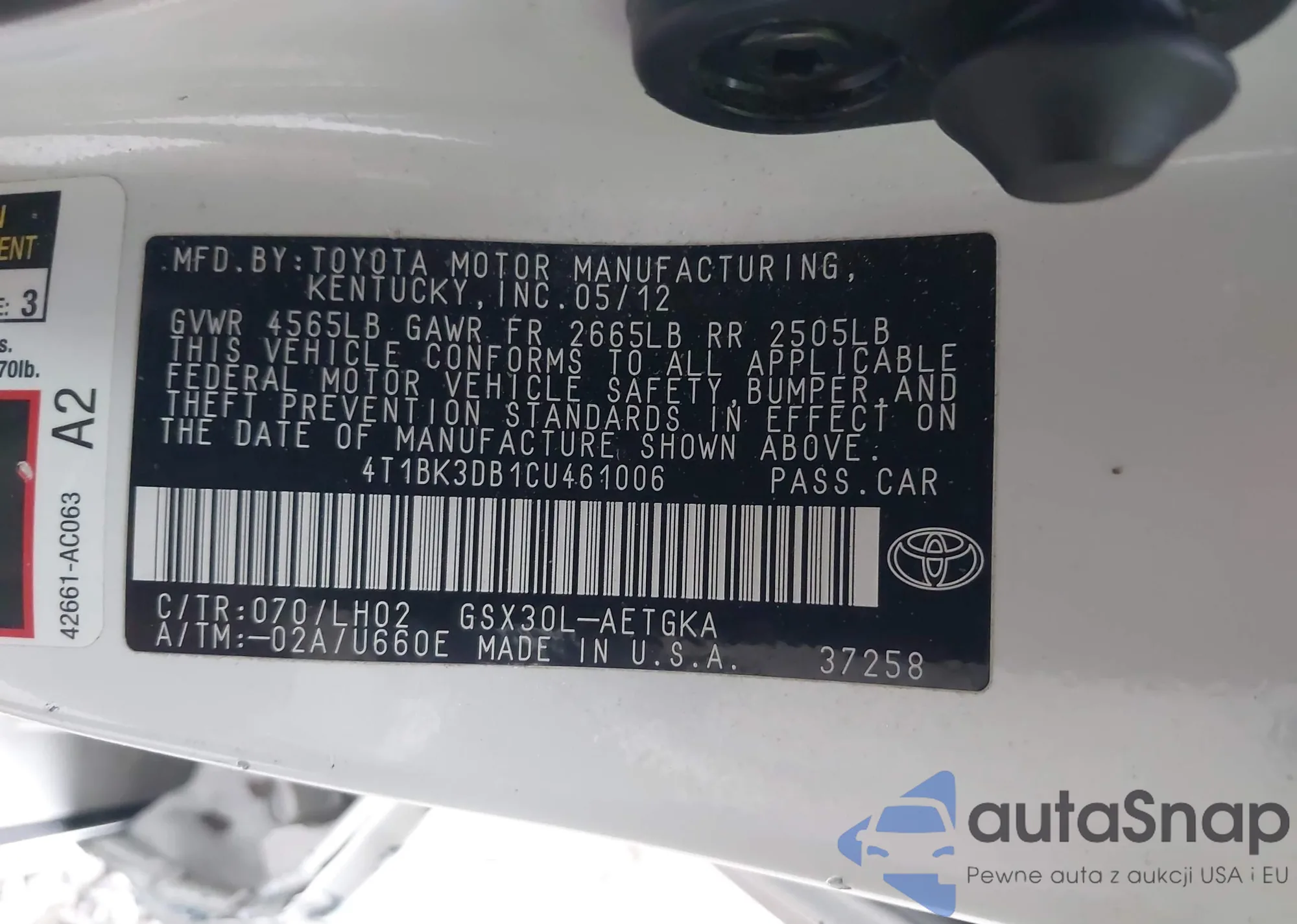 • VIN 4T1BK3DB1CU461006
