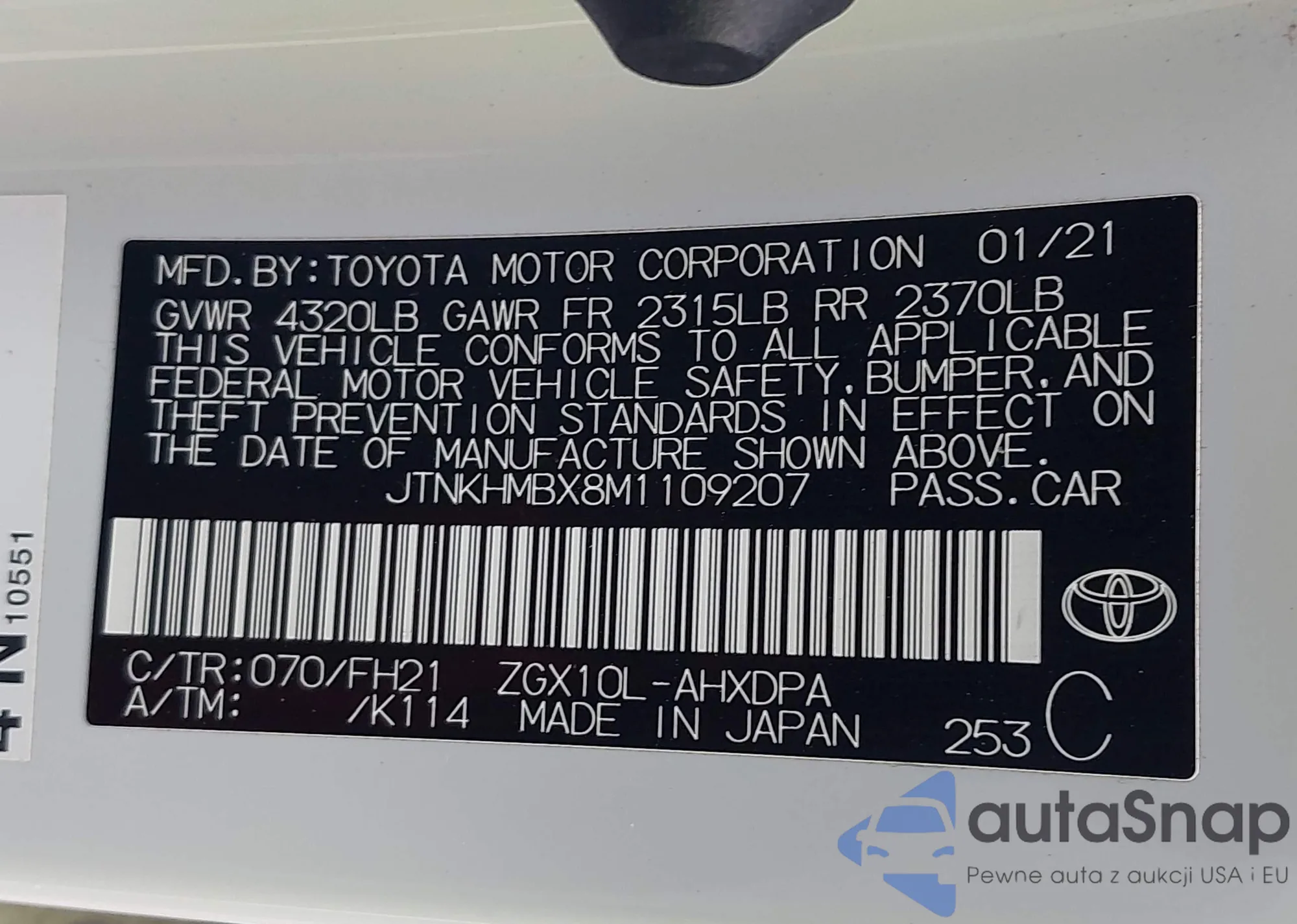 • VIN JTNKHMBX8M1109207