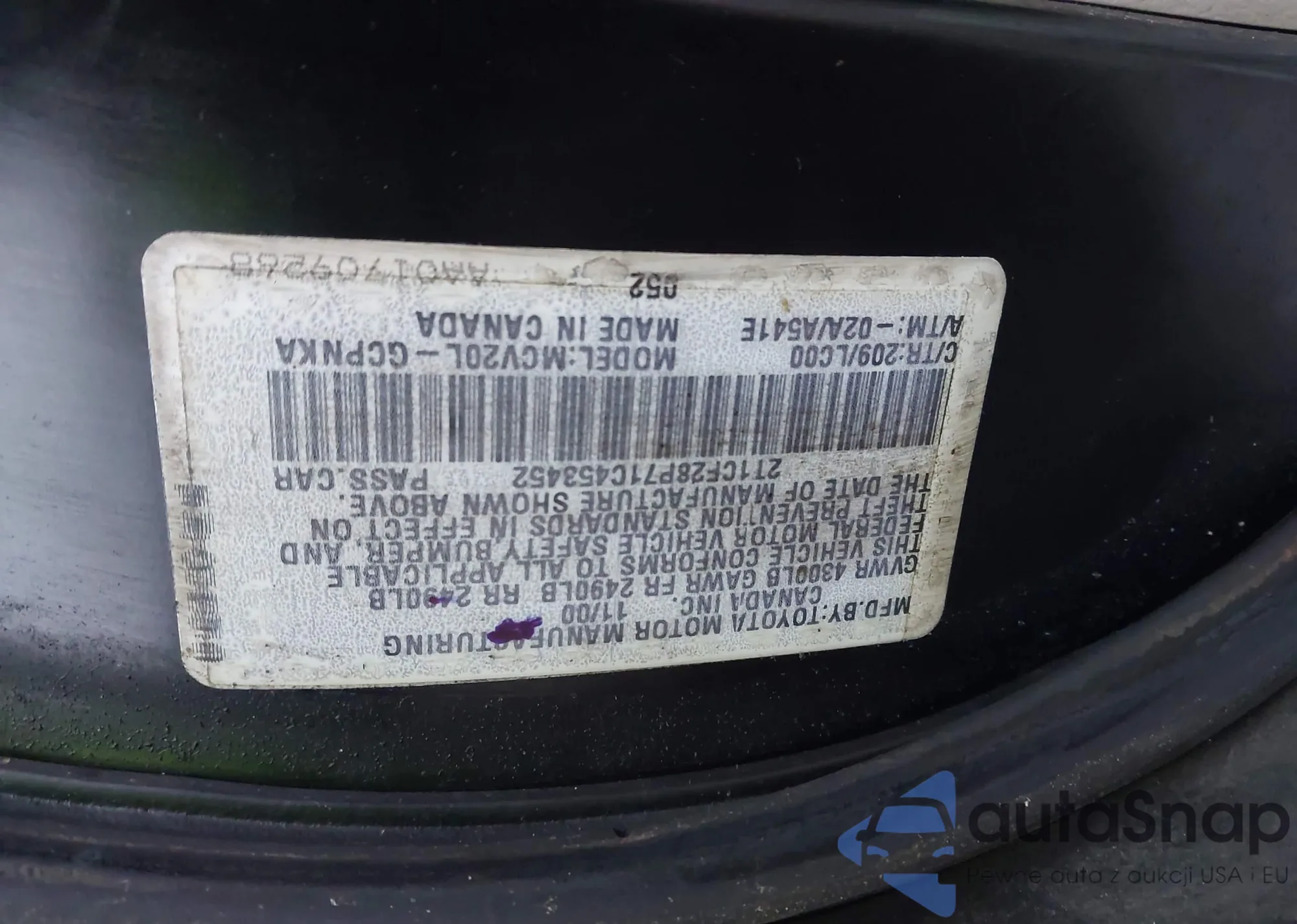 • VIN 2T1CF22P4YC276555