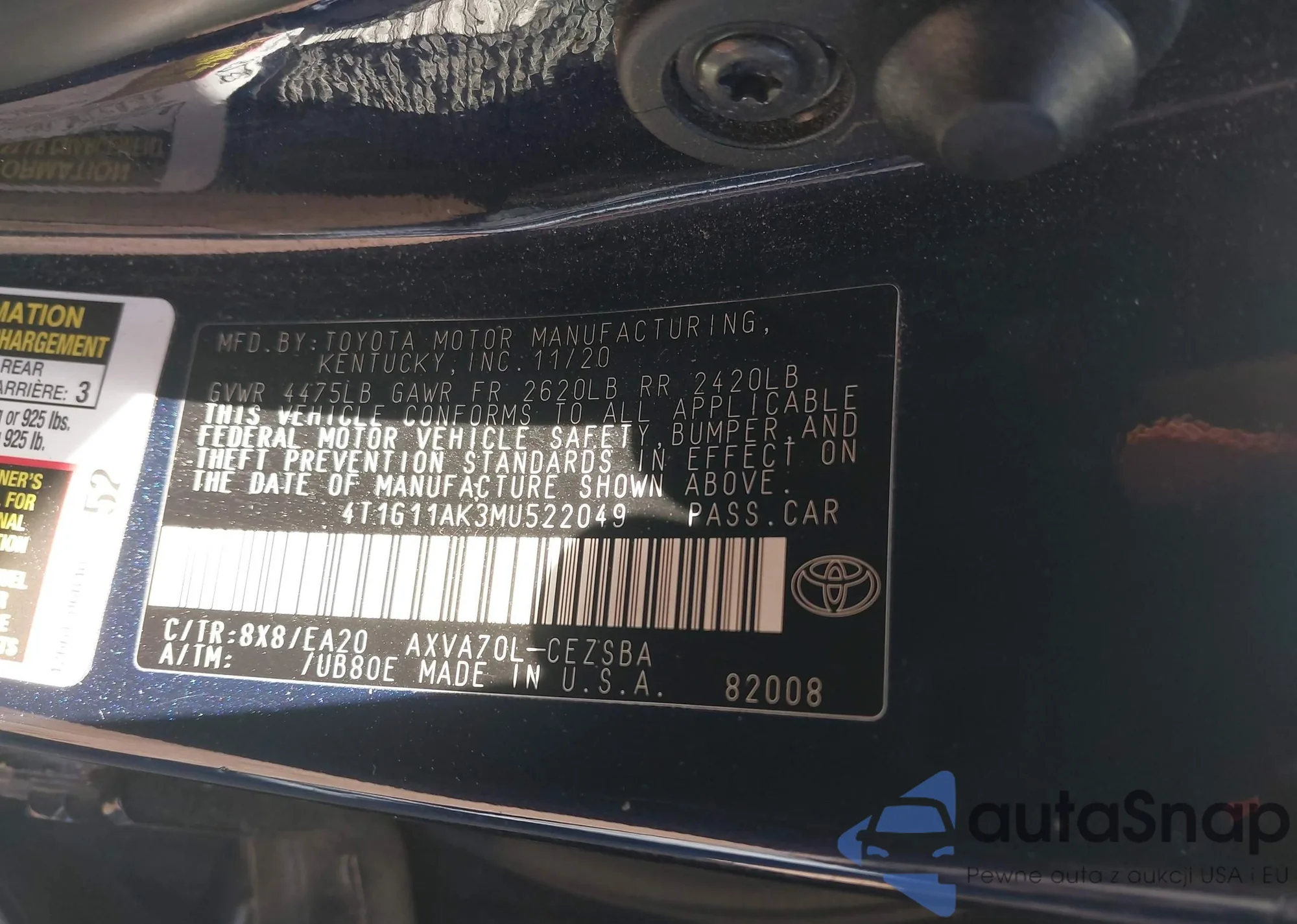 LOT: 43921166 VIN: 4T1G11AK3MU522049