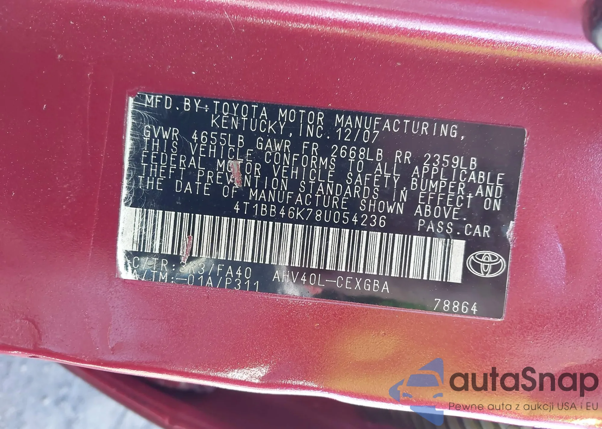 • VIN 4T1BB46K78U054236