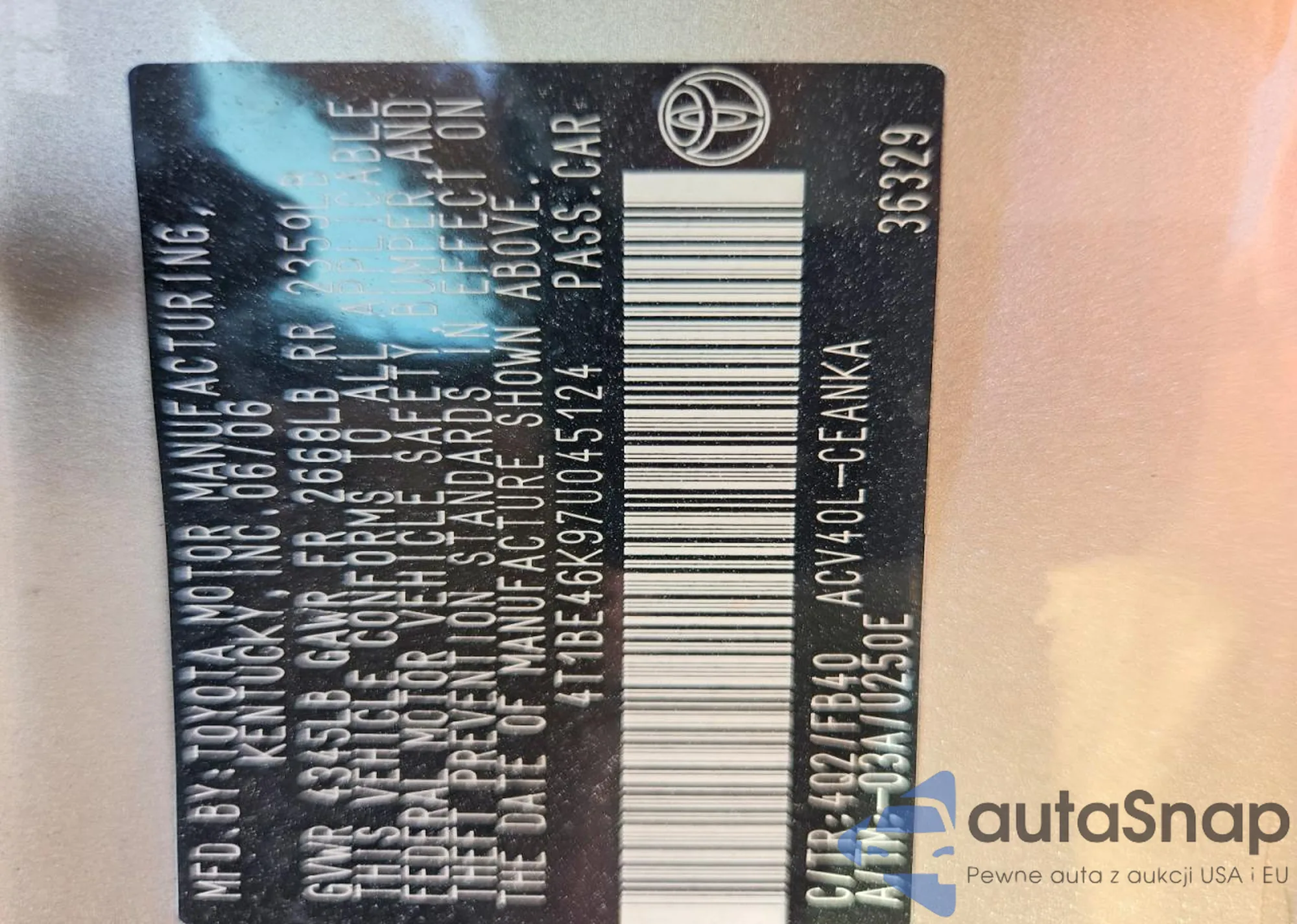 LOT: 75181445 VIN: 4T1BE46K67U521913