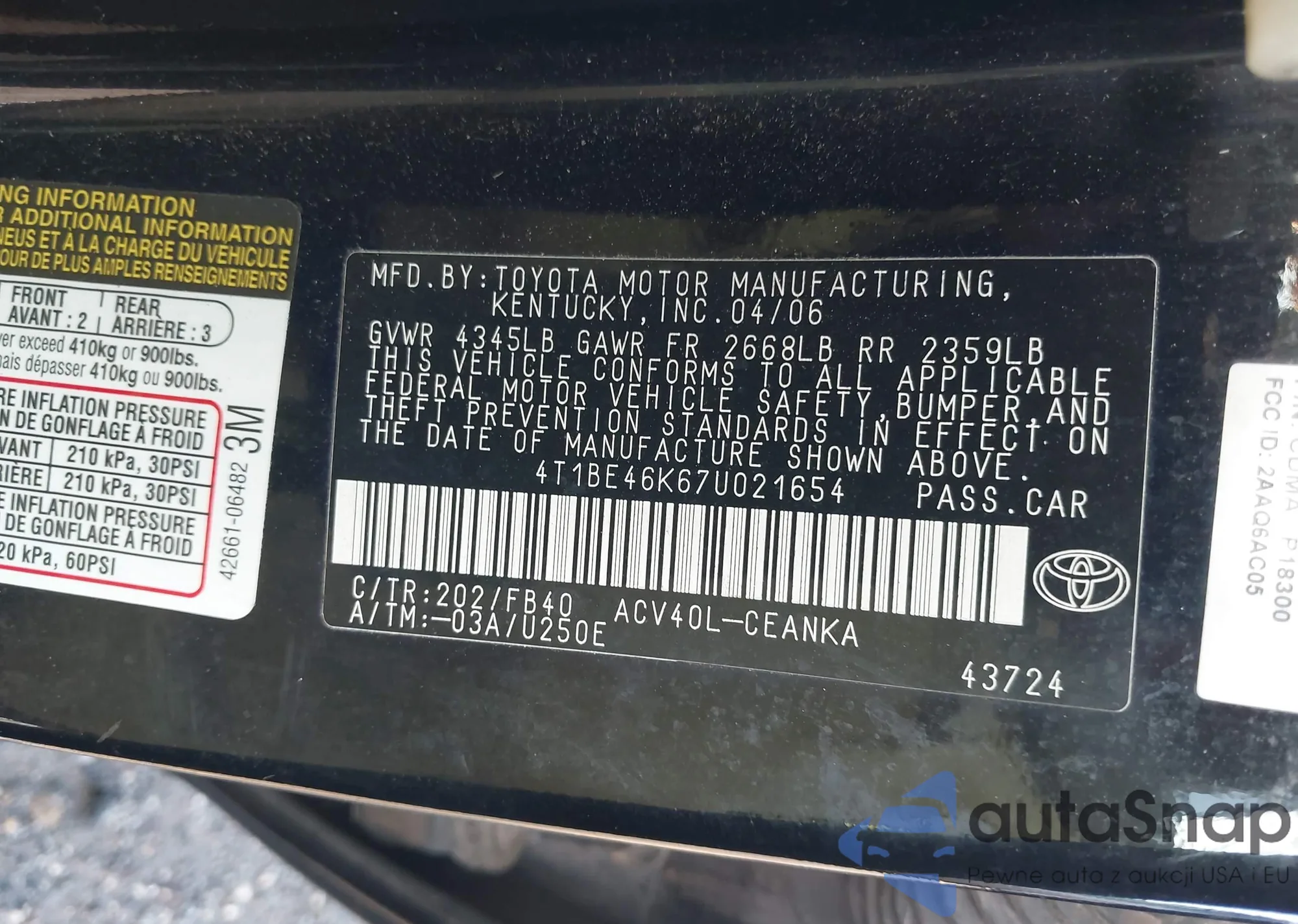 LOT: 43020728 VIN: 4T1BB46K07U009198