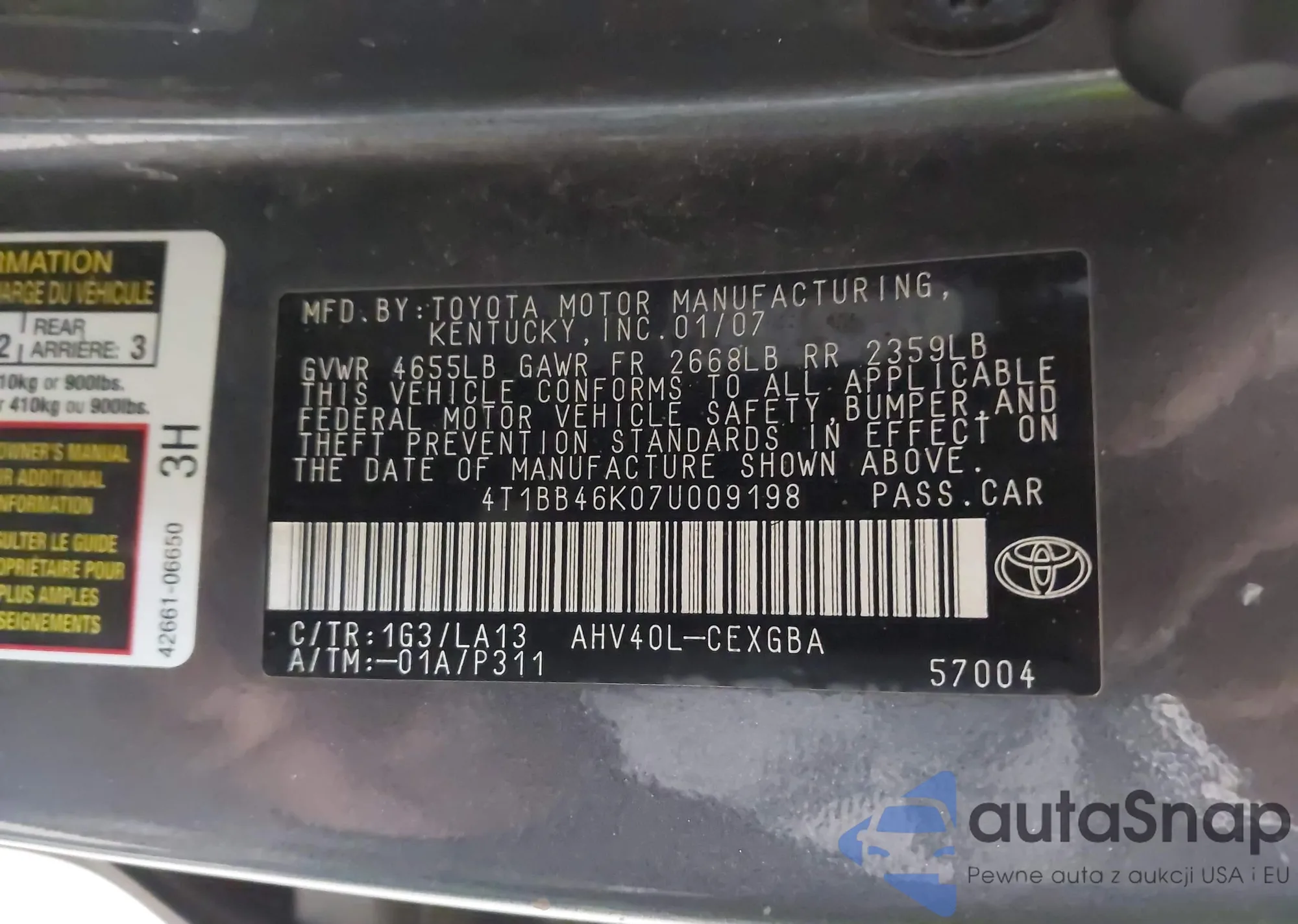 • VIN 4T1BB46K07U009198
