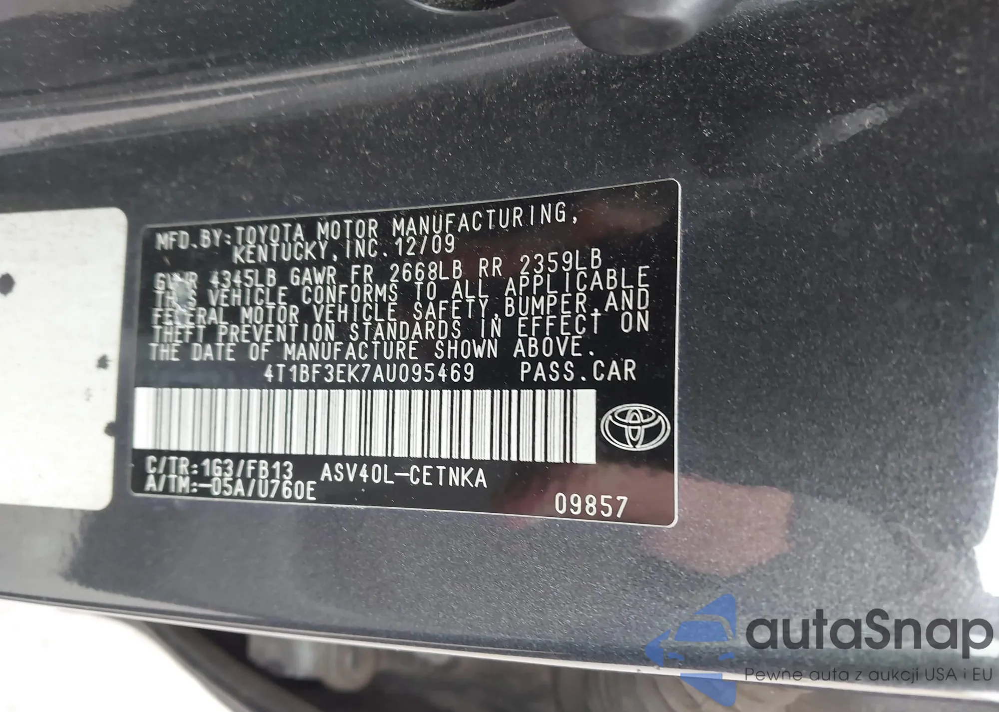 • VIN 4T1BF3EK9AU059413