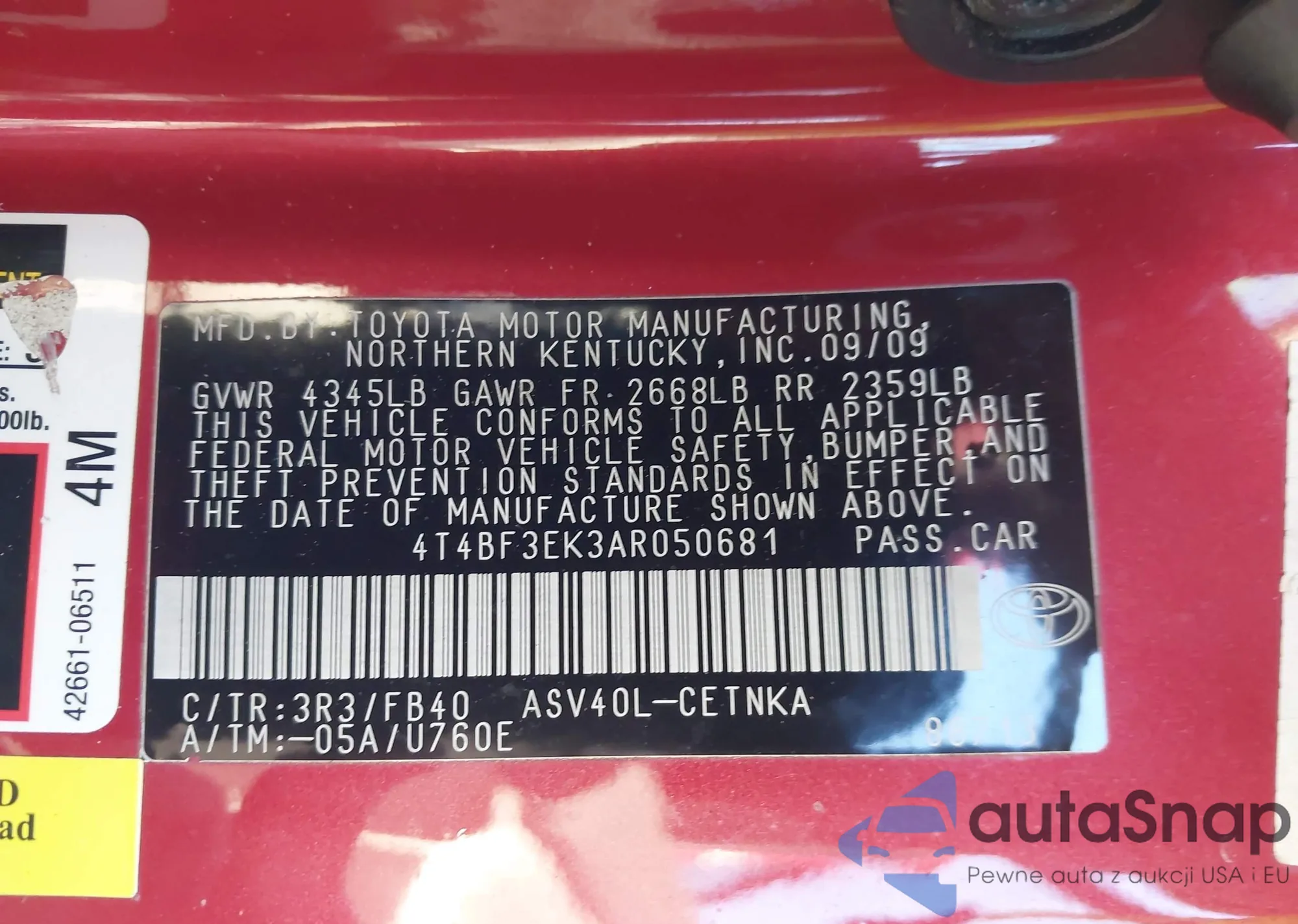 • VIN 4T4BF3EK3AR050681