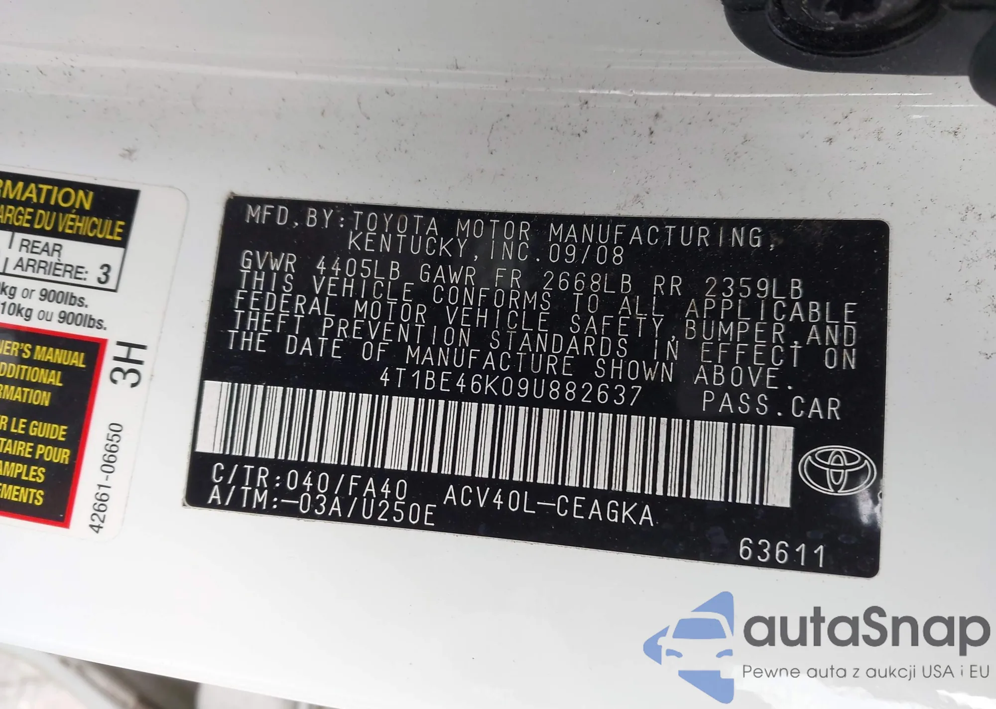 LOT: 44061515 VIN: 4T1BB46K79U075606