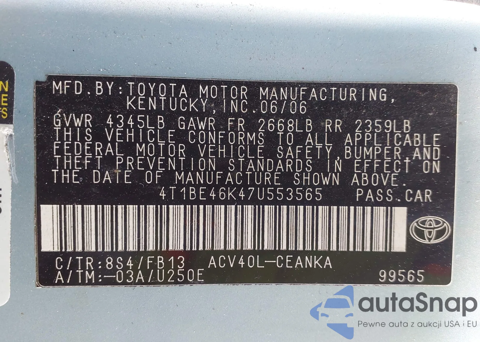 • VIN 4T1BE46K47U553565