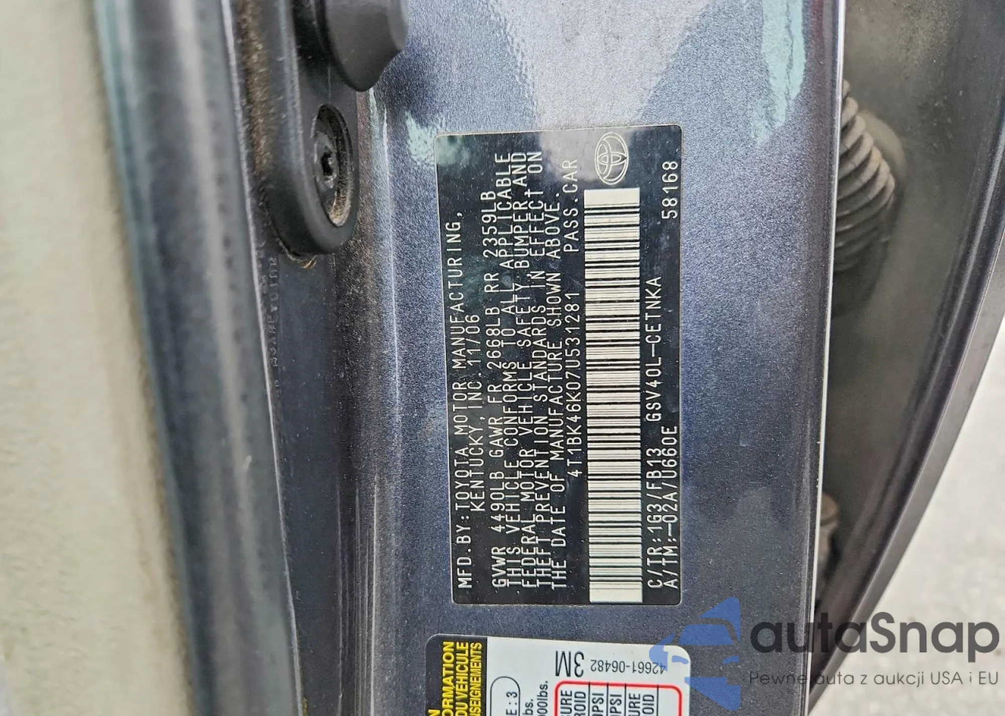 • VIN 4T1BK46K07U531281