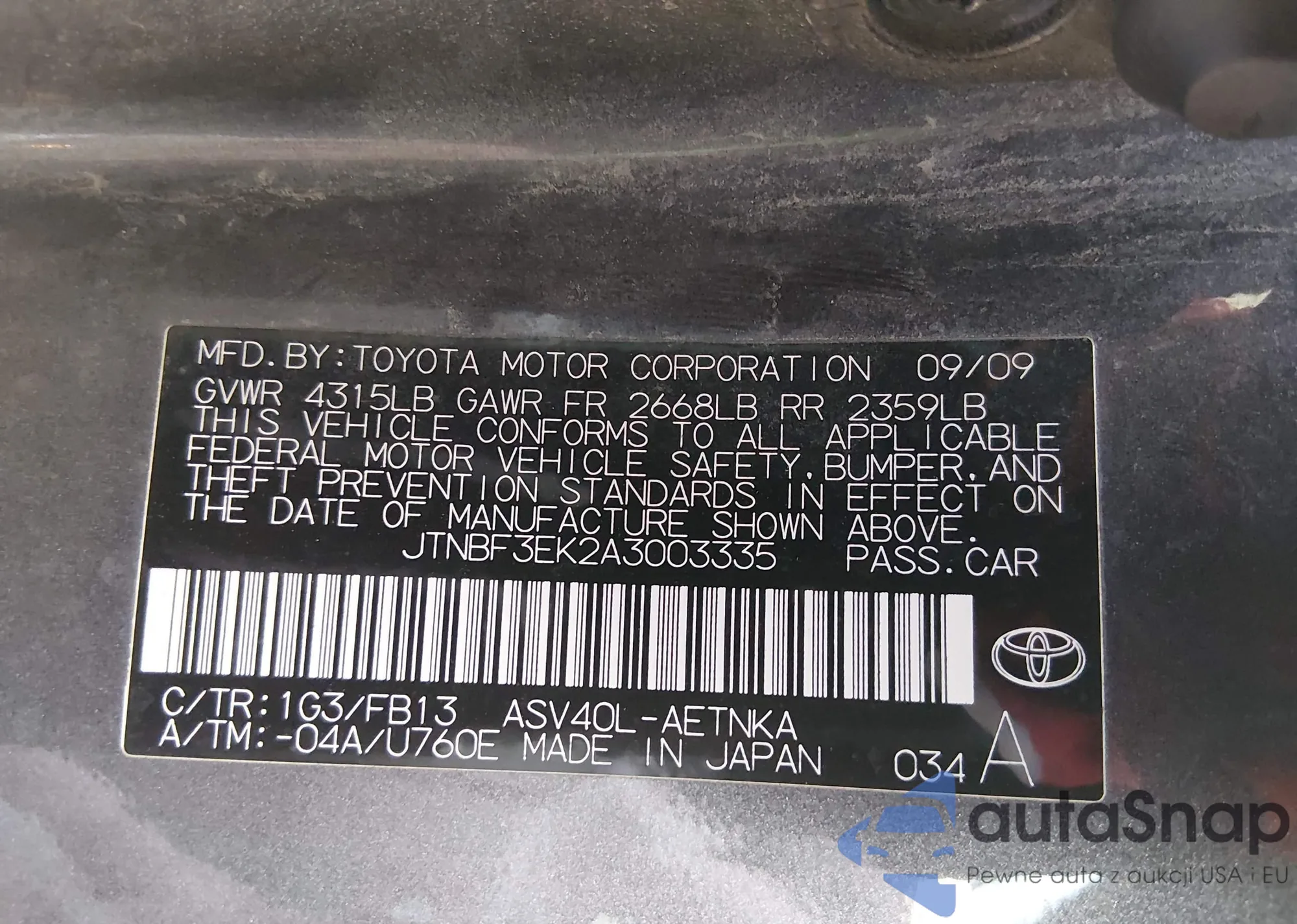 • VIN JTNBF3EK2A3003335