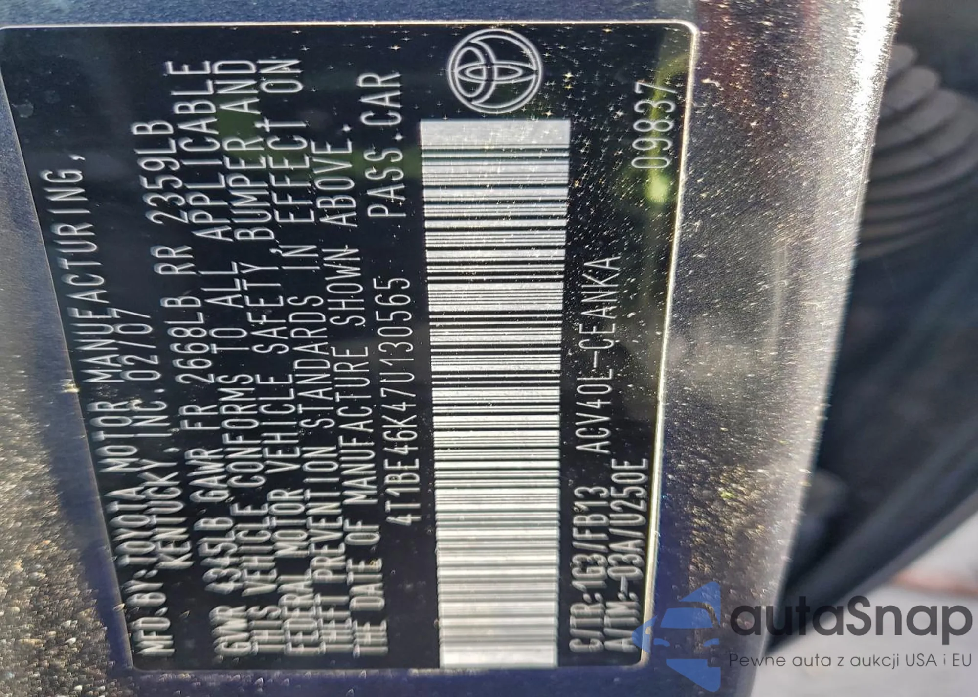 LOT: 98307705 VIN: 4T1BE46K47U130565