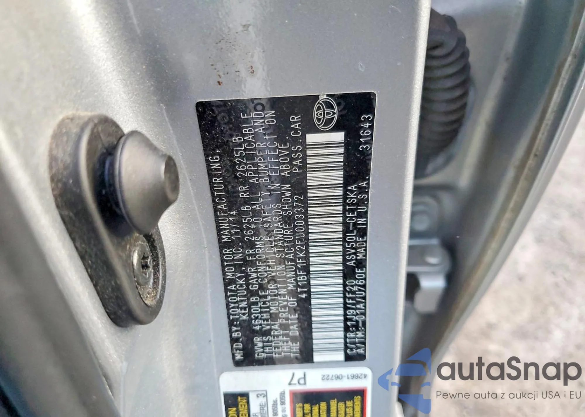 • VIN 4T1BF1FK2FU003372