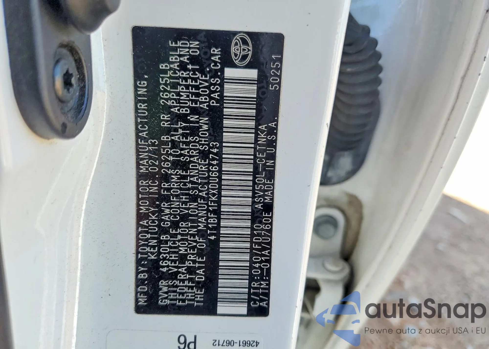• VIN 4T1BF1FKXDU664743