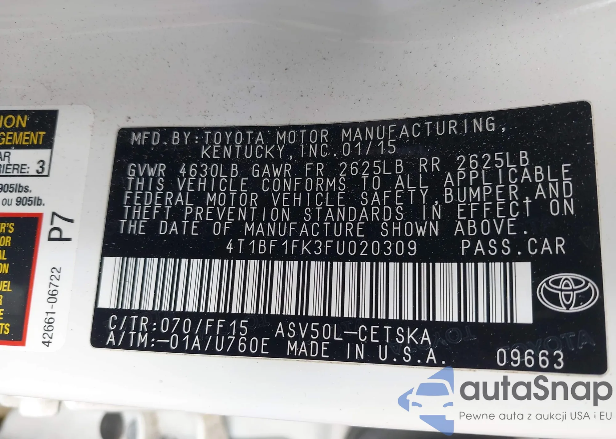 • VIN 4T1BF1FK4FU105093