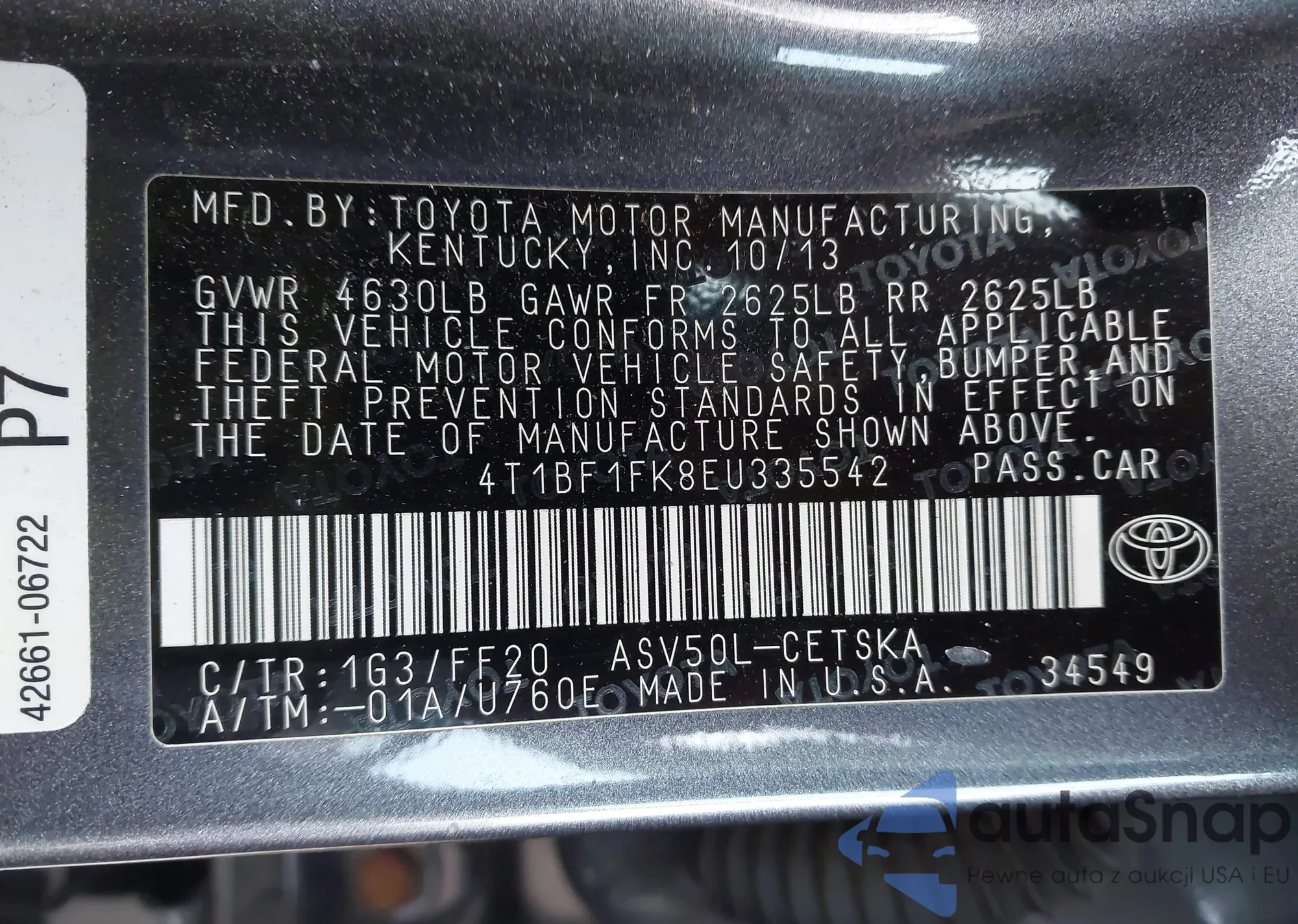 • VIN 4T1BF1FK8EU335542