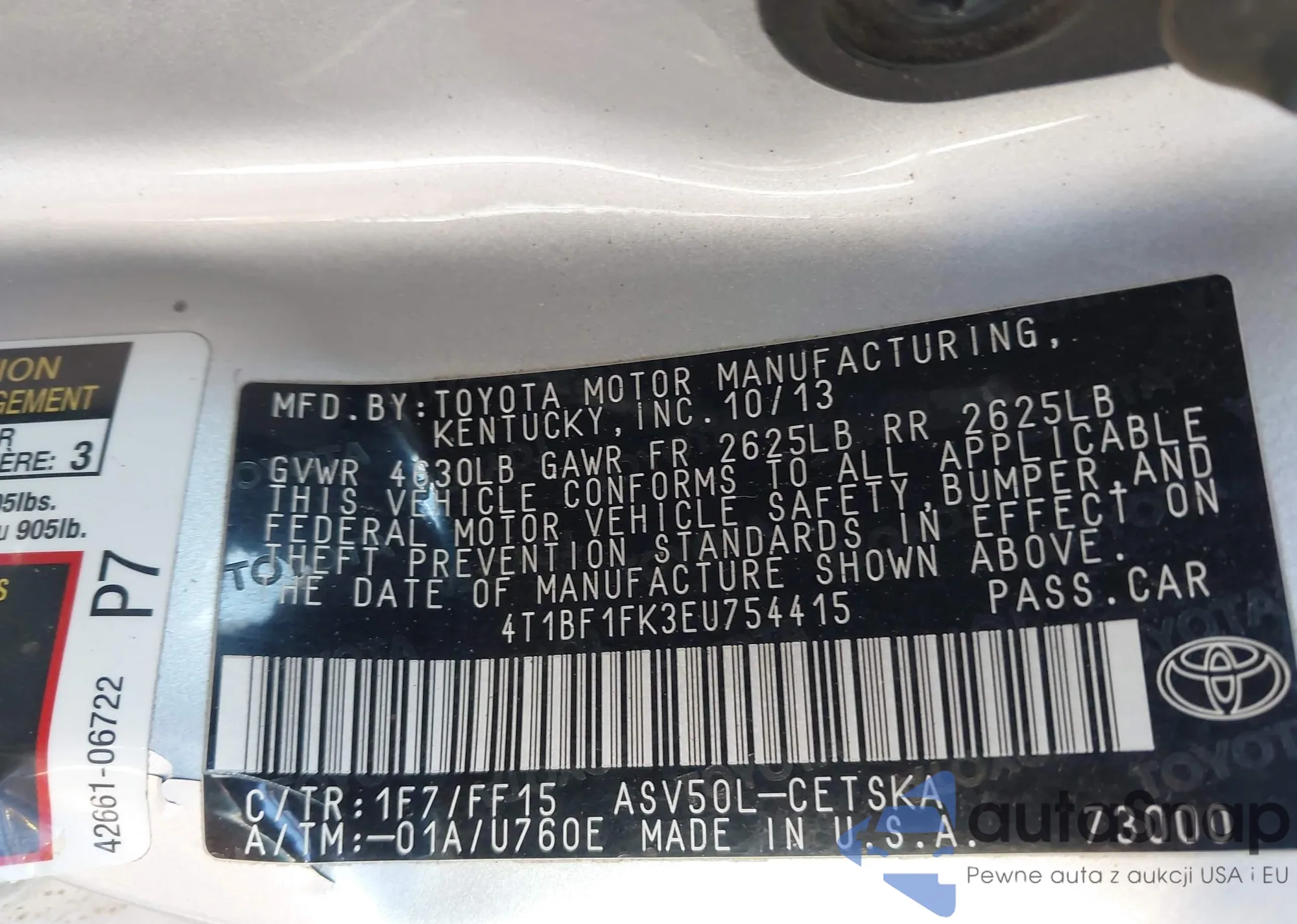 • VIN 4T1BF1FK3EU754415