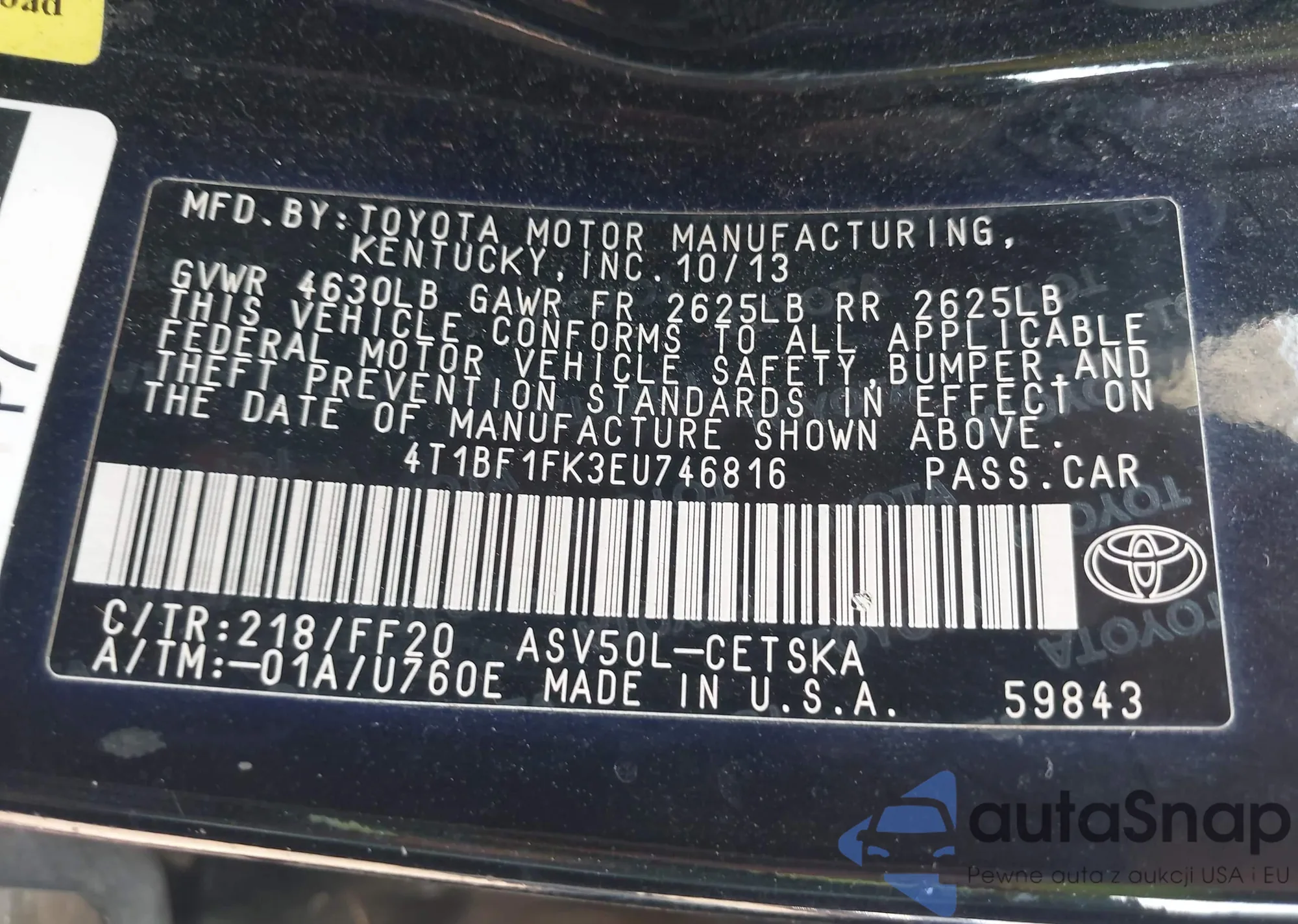 • VIN 4T1BF1FK3EU746816