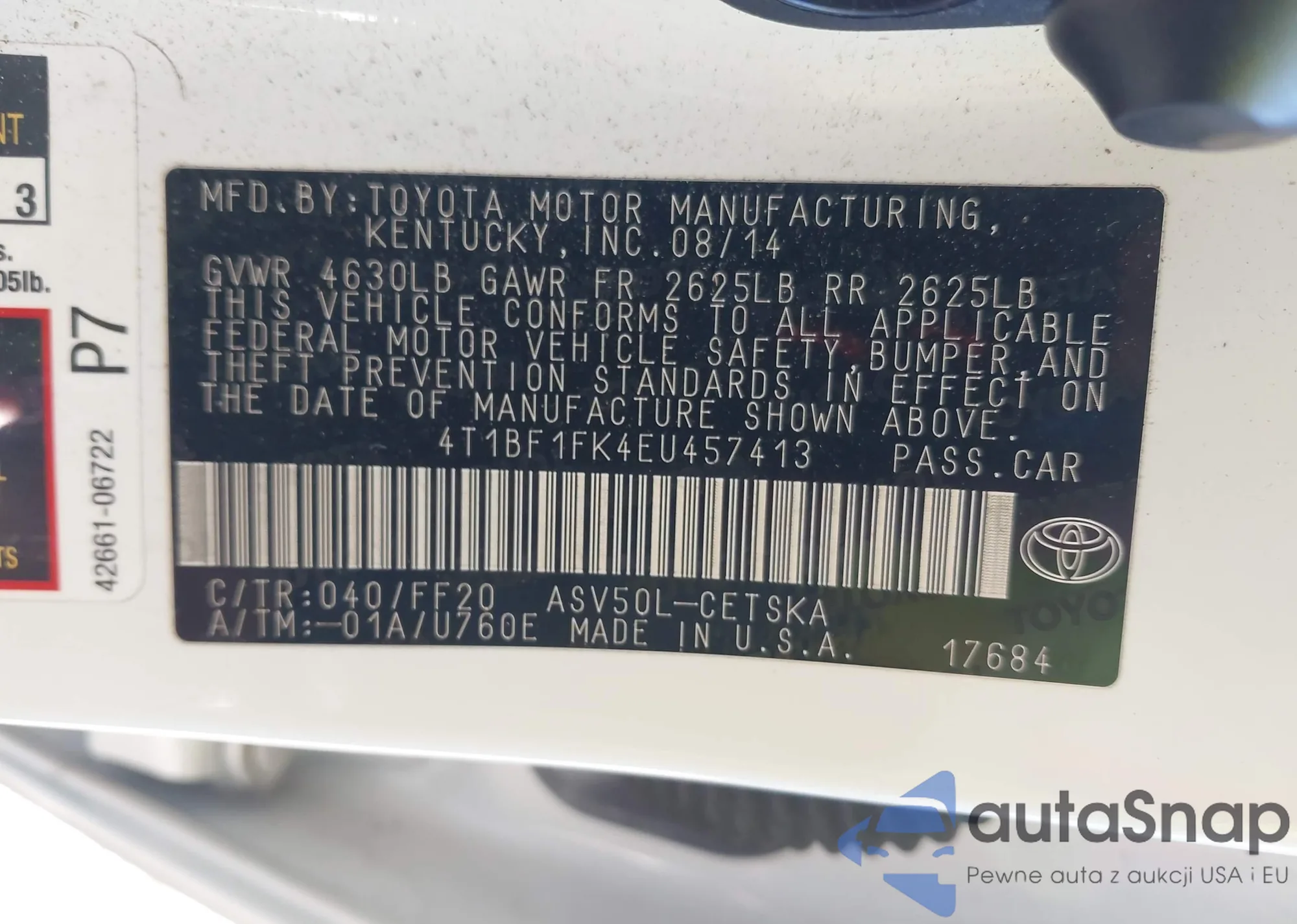 • VIN 4T1BF1FK4EU457413