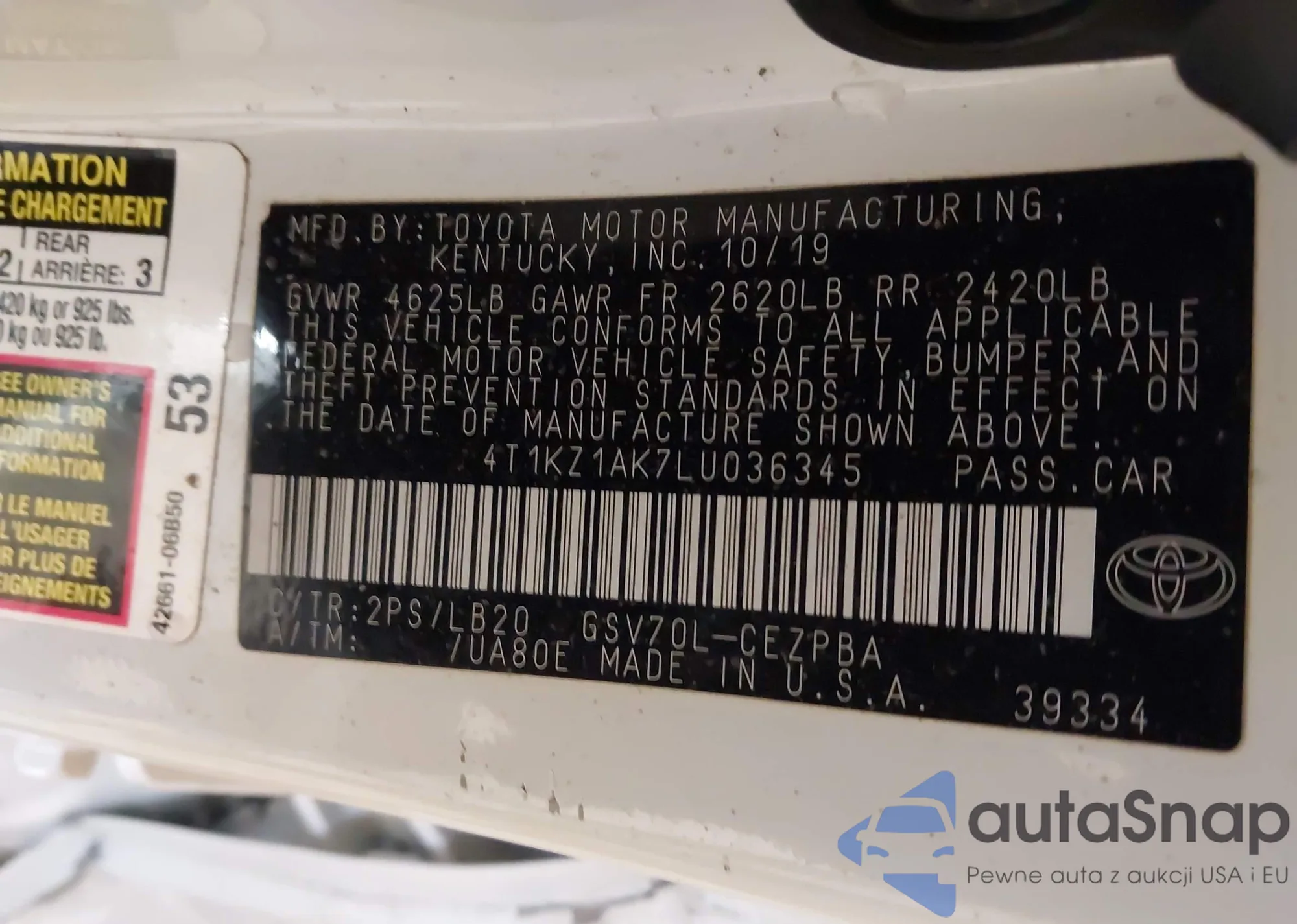 • VIN 4T1KZ1AK7LU036345