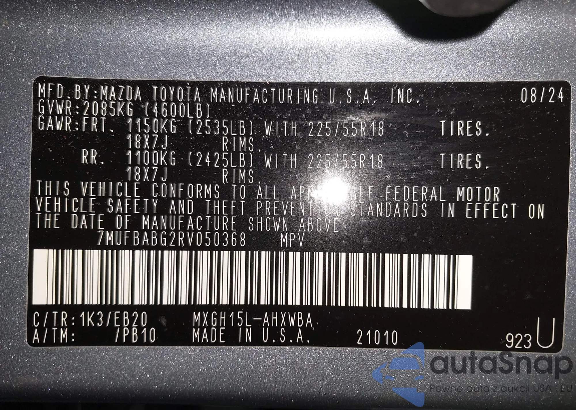 • VIN 7MUFBABG2RV050368