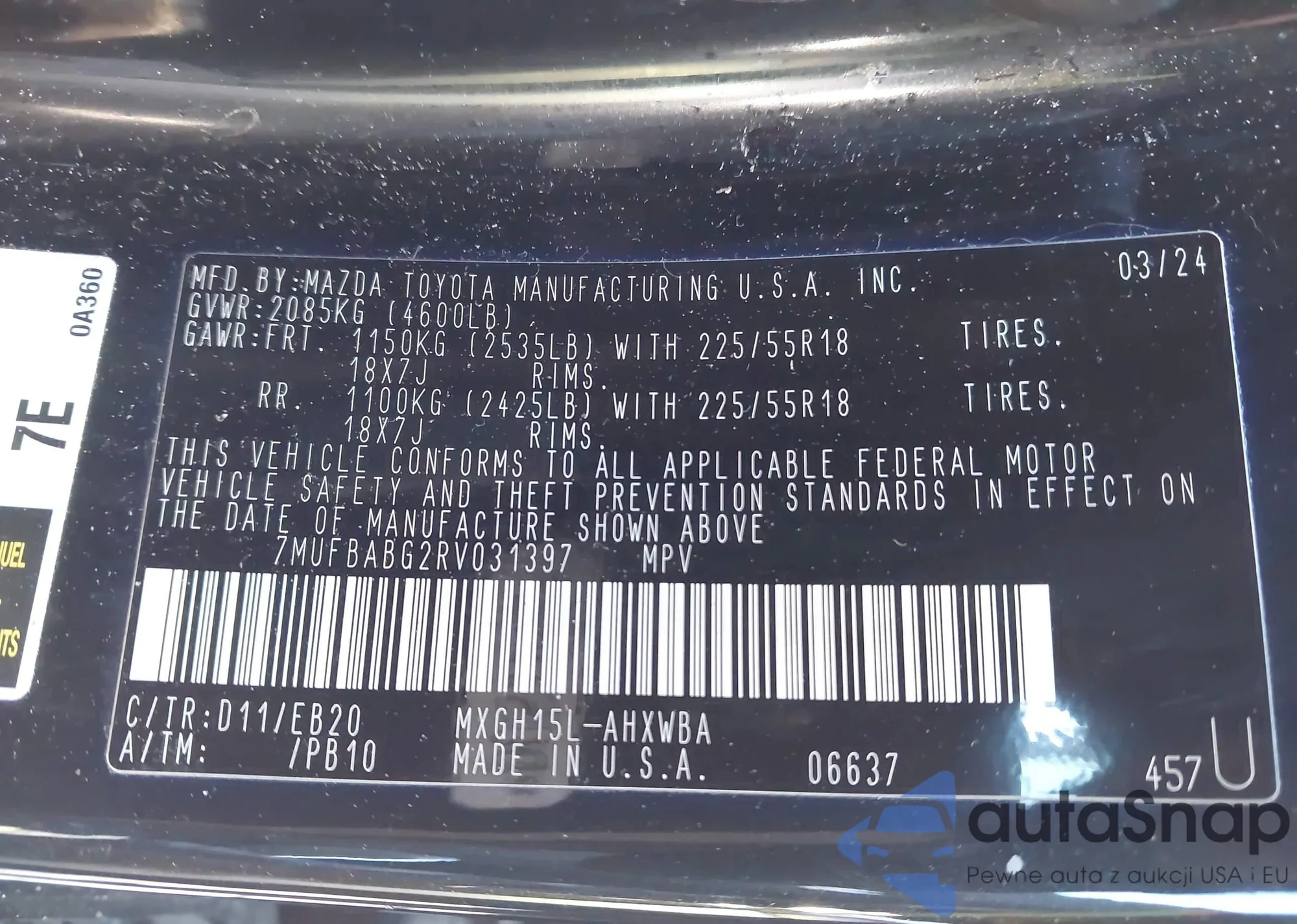 • VIN 7MUCAAAG2PV046115