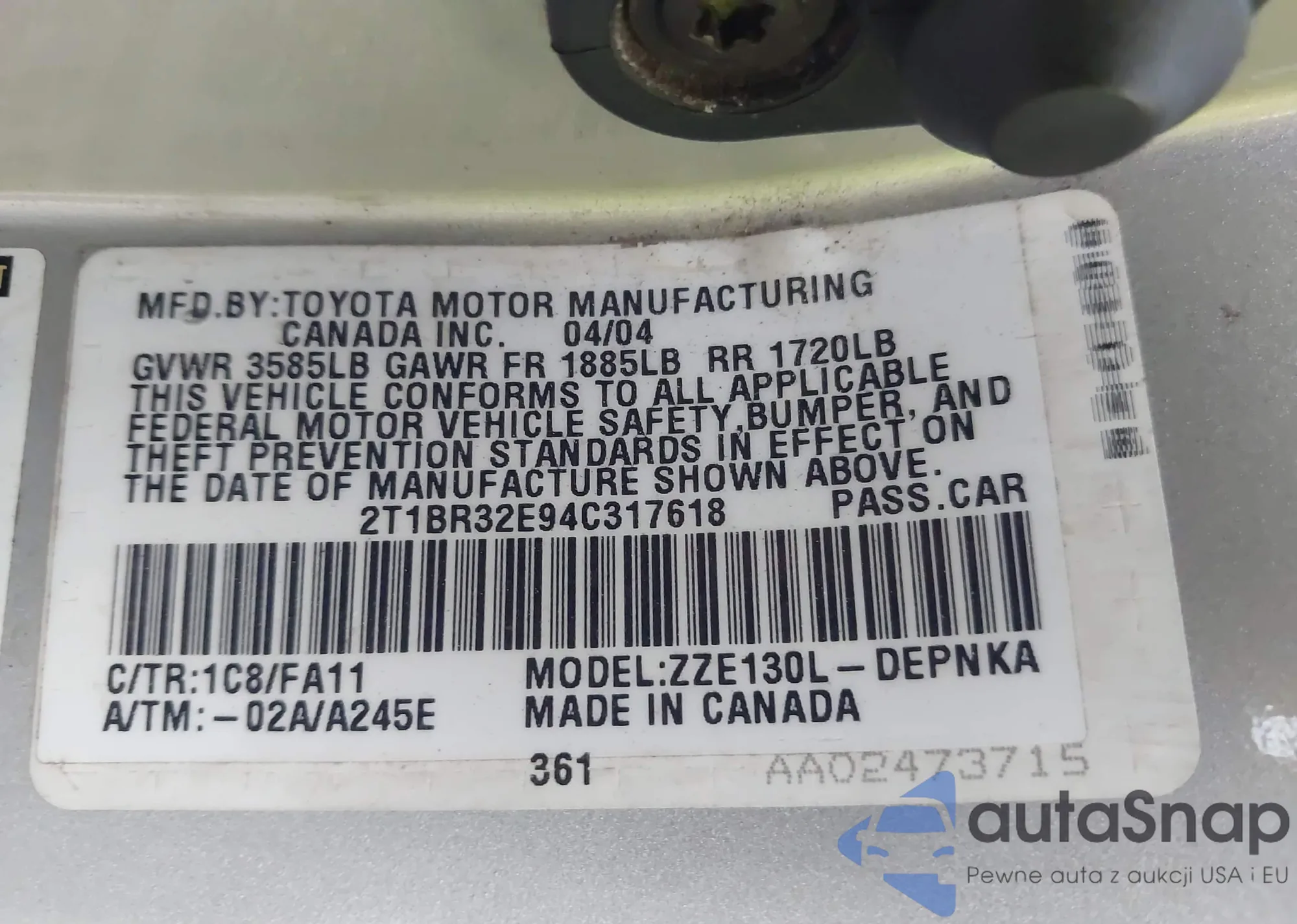 LOT: 43784570 VIN: 1NXBR32E04Z199134