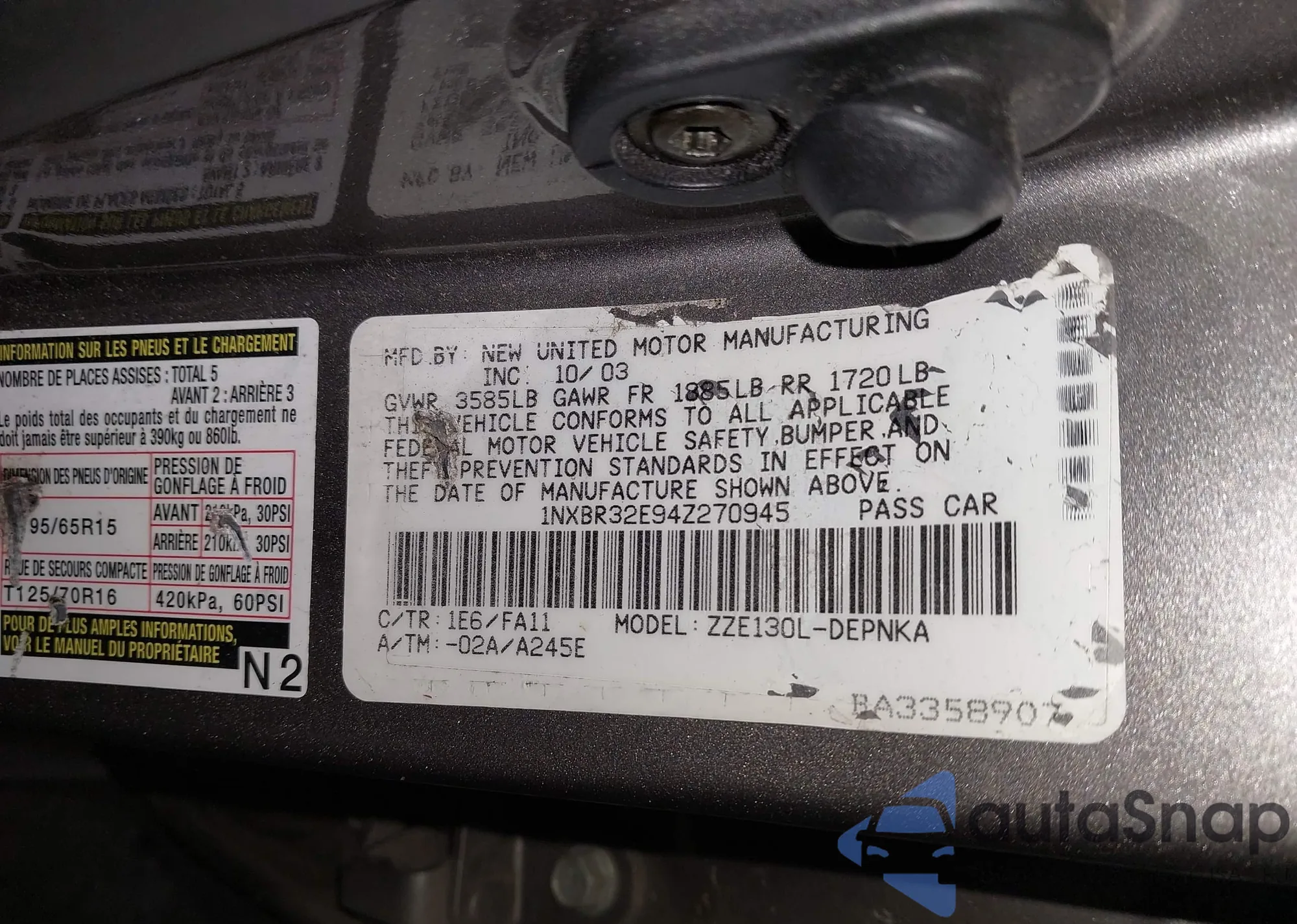 • VIN 1NXBR32E94Z270945