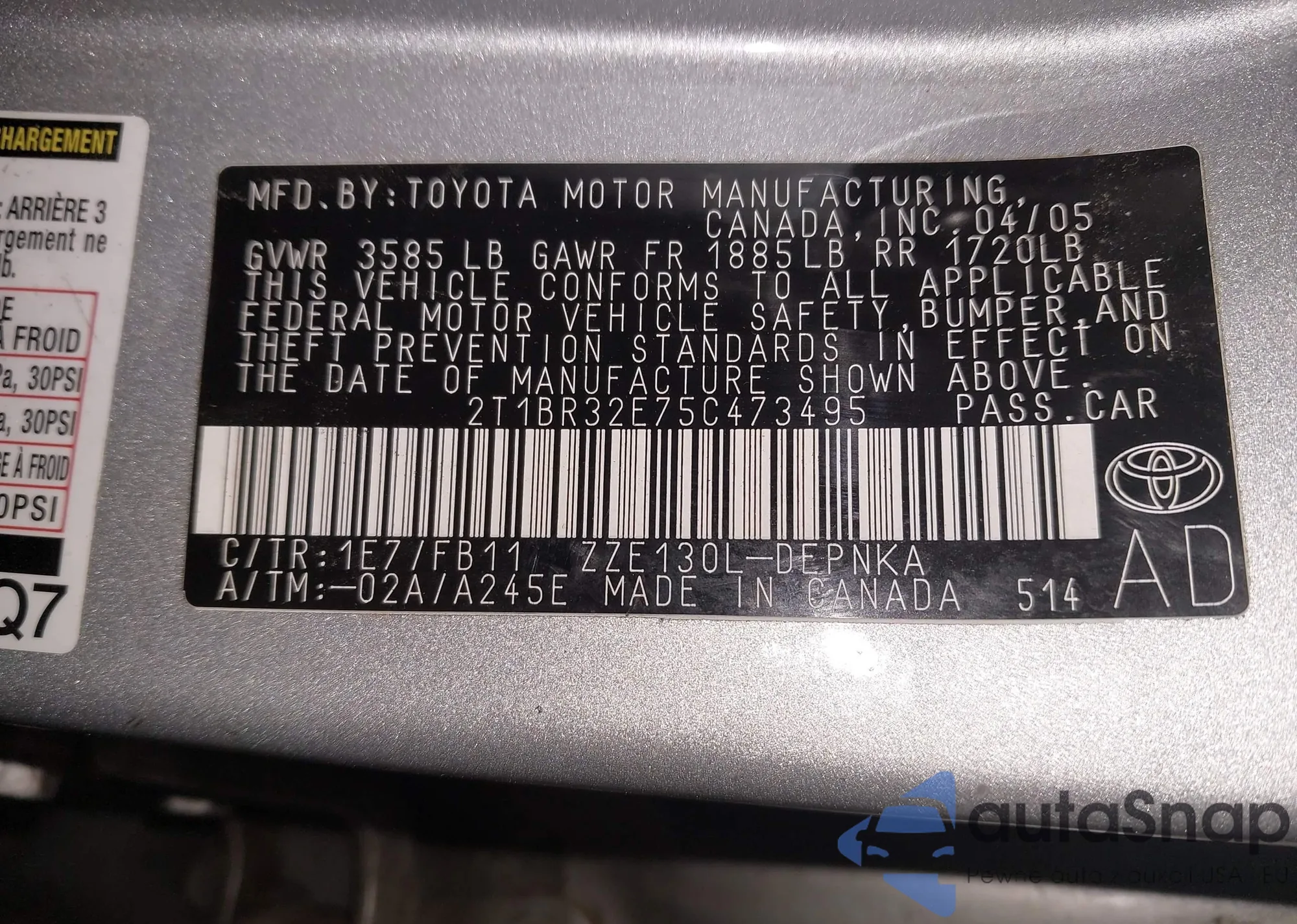 LOT: 44177165 VIN: 1NXBR32E85Z411618