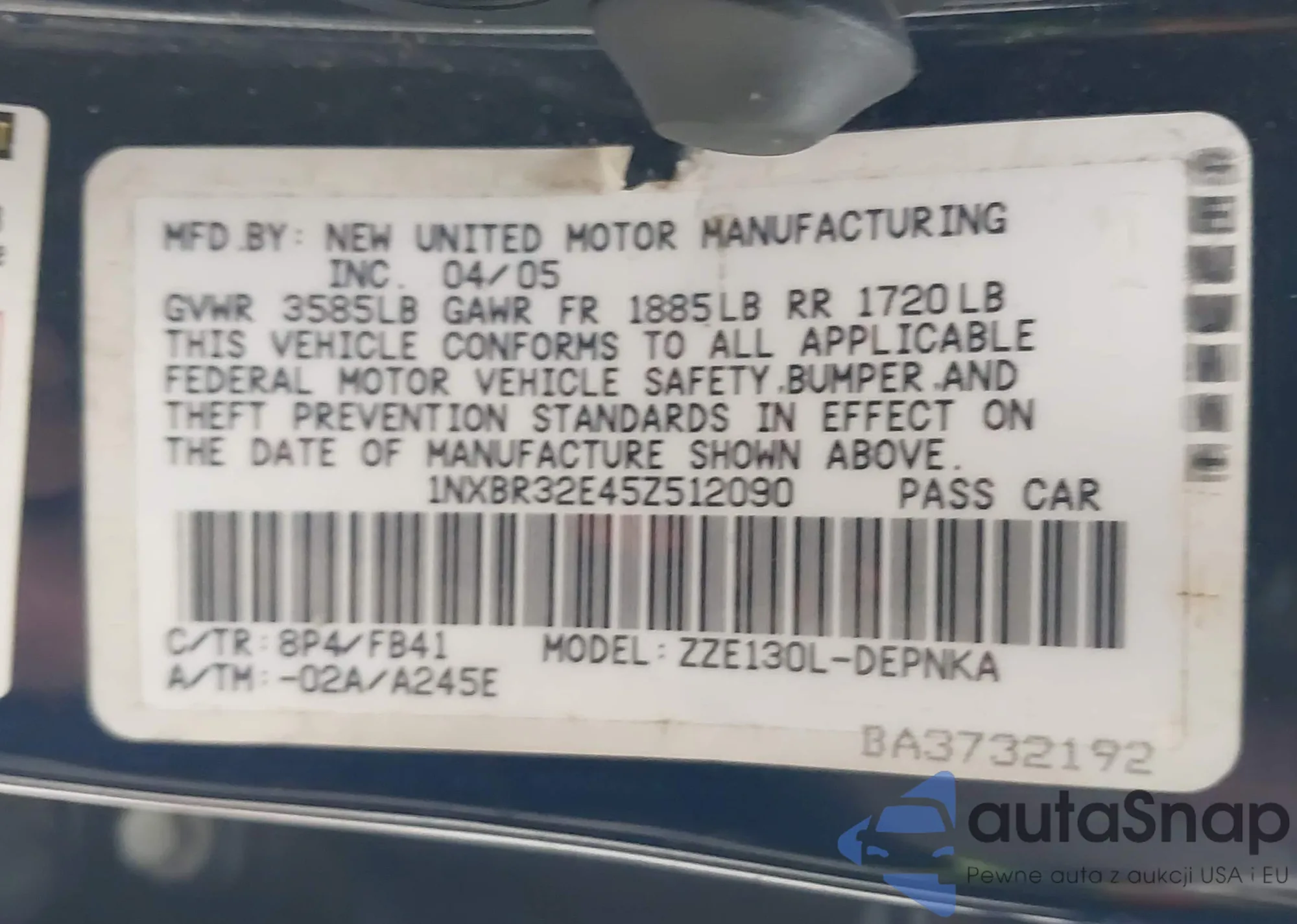 • VIN 1NXBR32E45Z512090