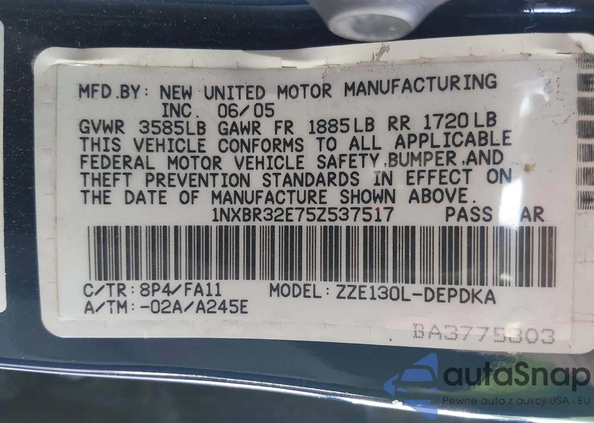 • VIN 1NXBR32E75Z537517