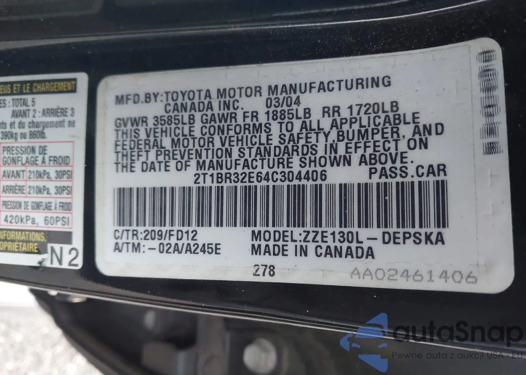 LOT: 44220804 VIN: 1NXBR32E04Z243911