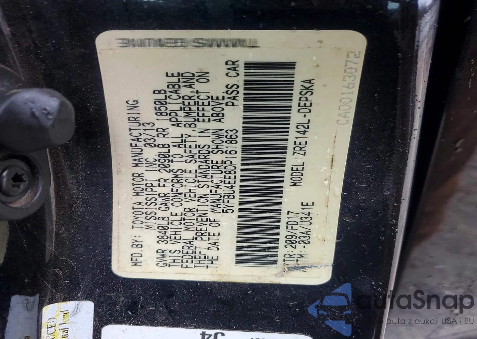 • VIN 5YFBU4EE8DP161863
