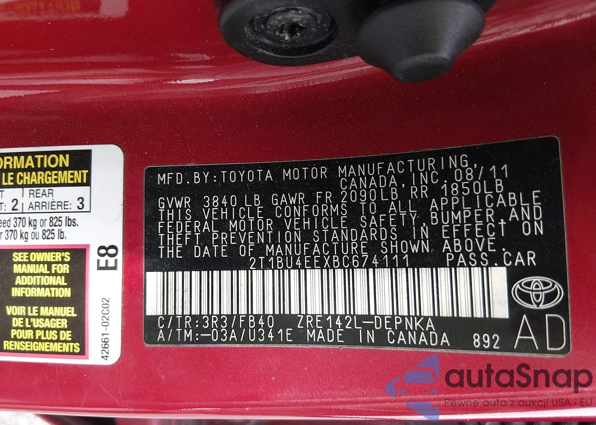 • VIN 2T1BU4EEXBC674111