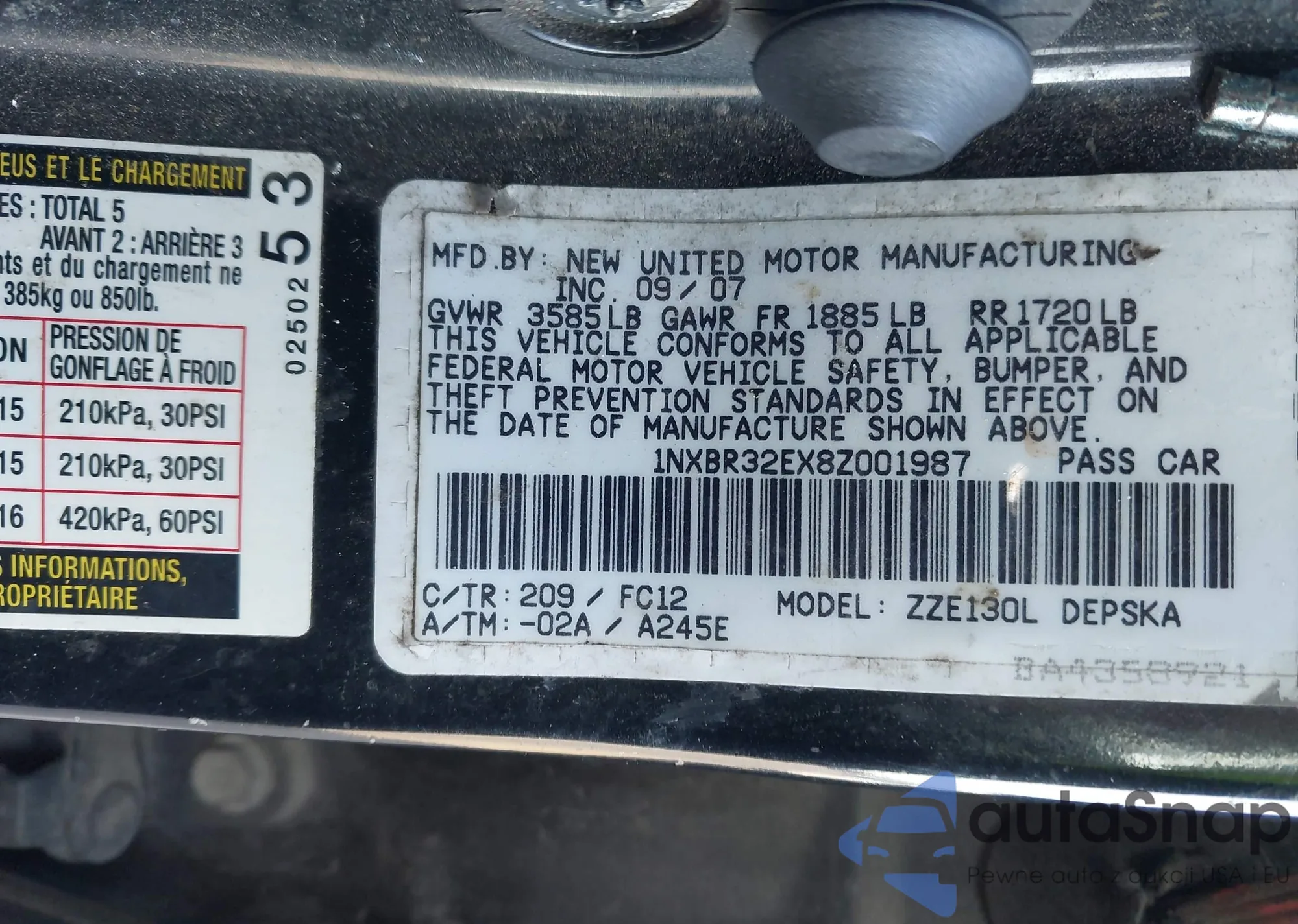 • VIN 1NXBR32EX8Z001987