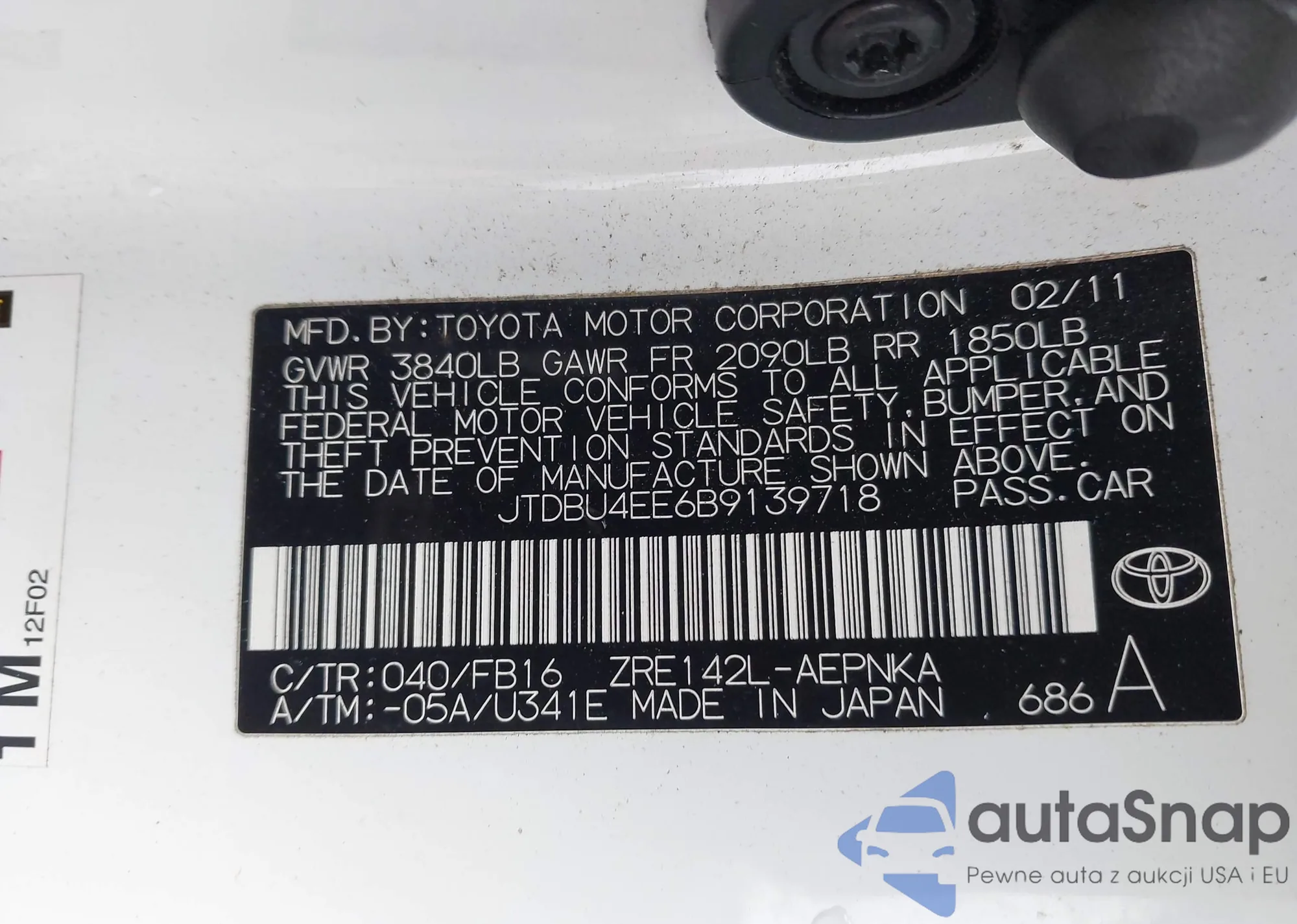 • VIN JTDBU4EE6B9139718