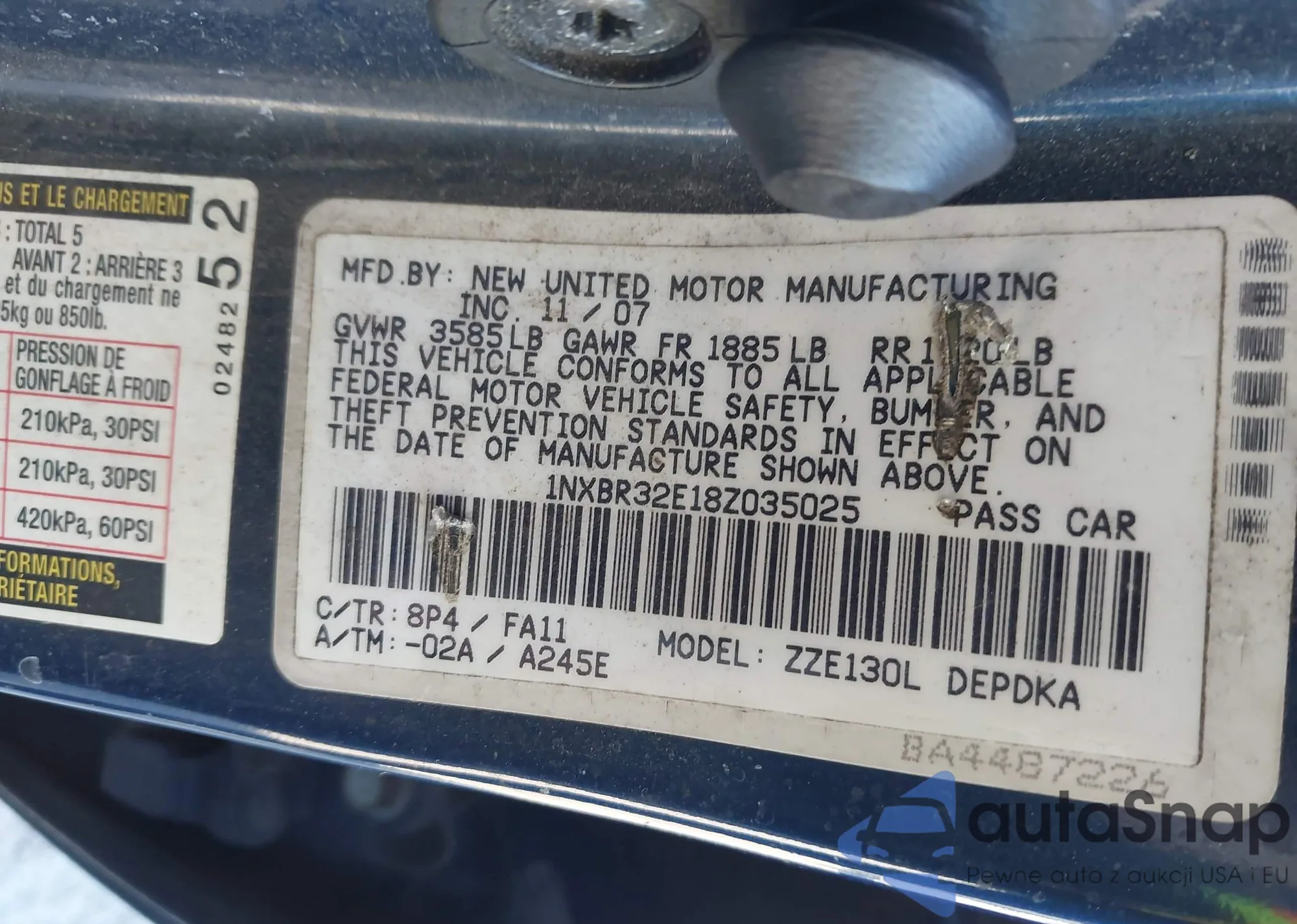 LOT: 44345289 VIN: 1NXBR32E18Z035025