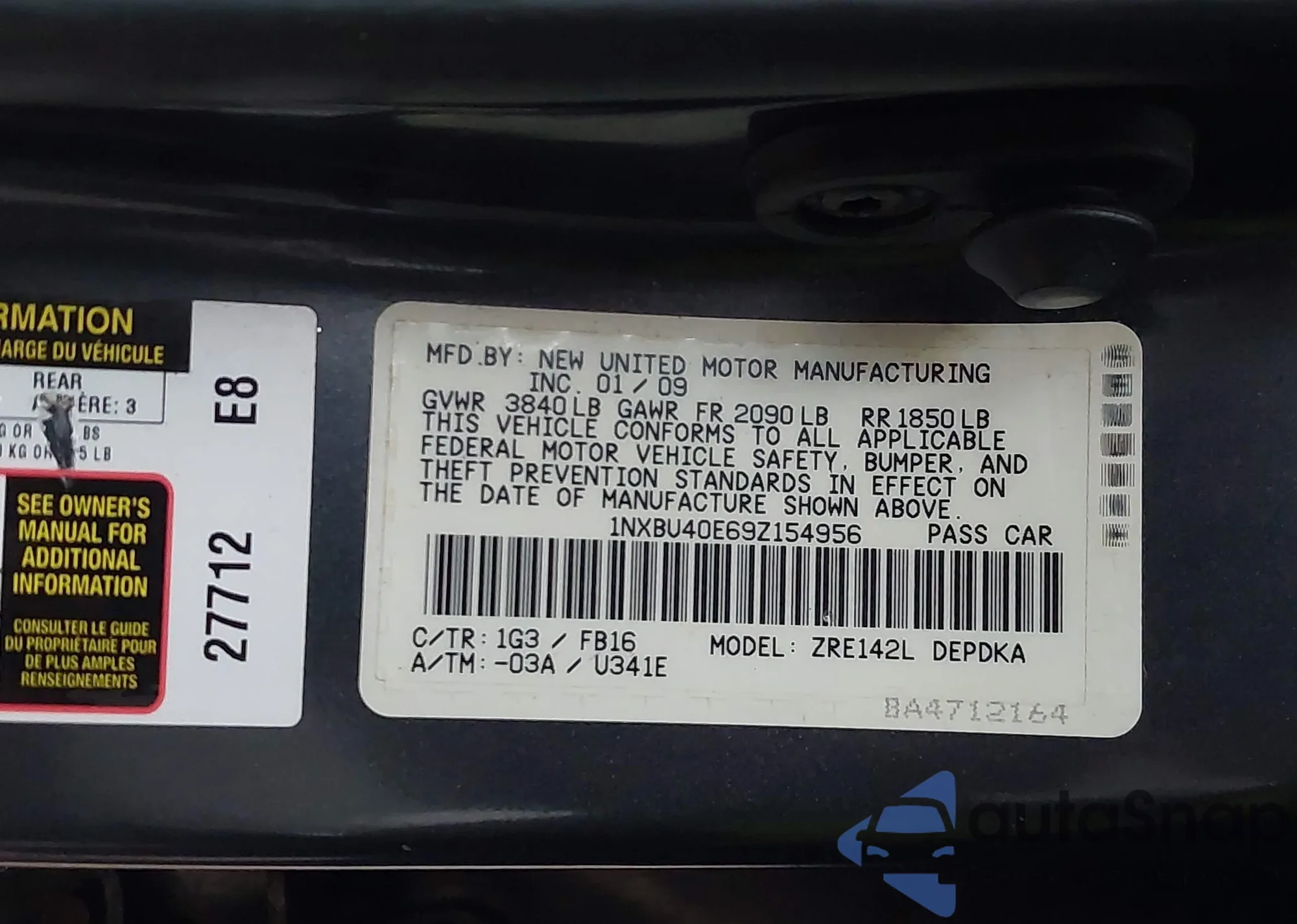 • VIN 1NXBU40E69Z154956