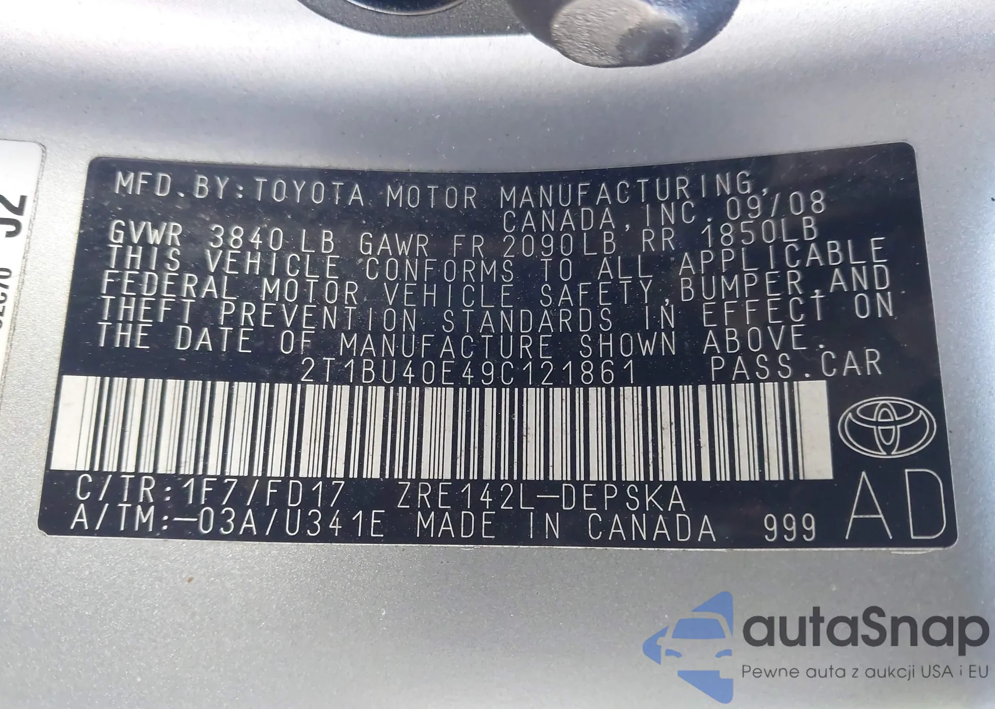 • VIN 2T1BR30E38C917852