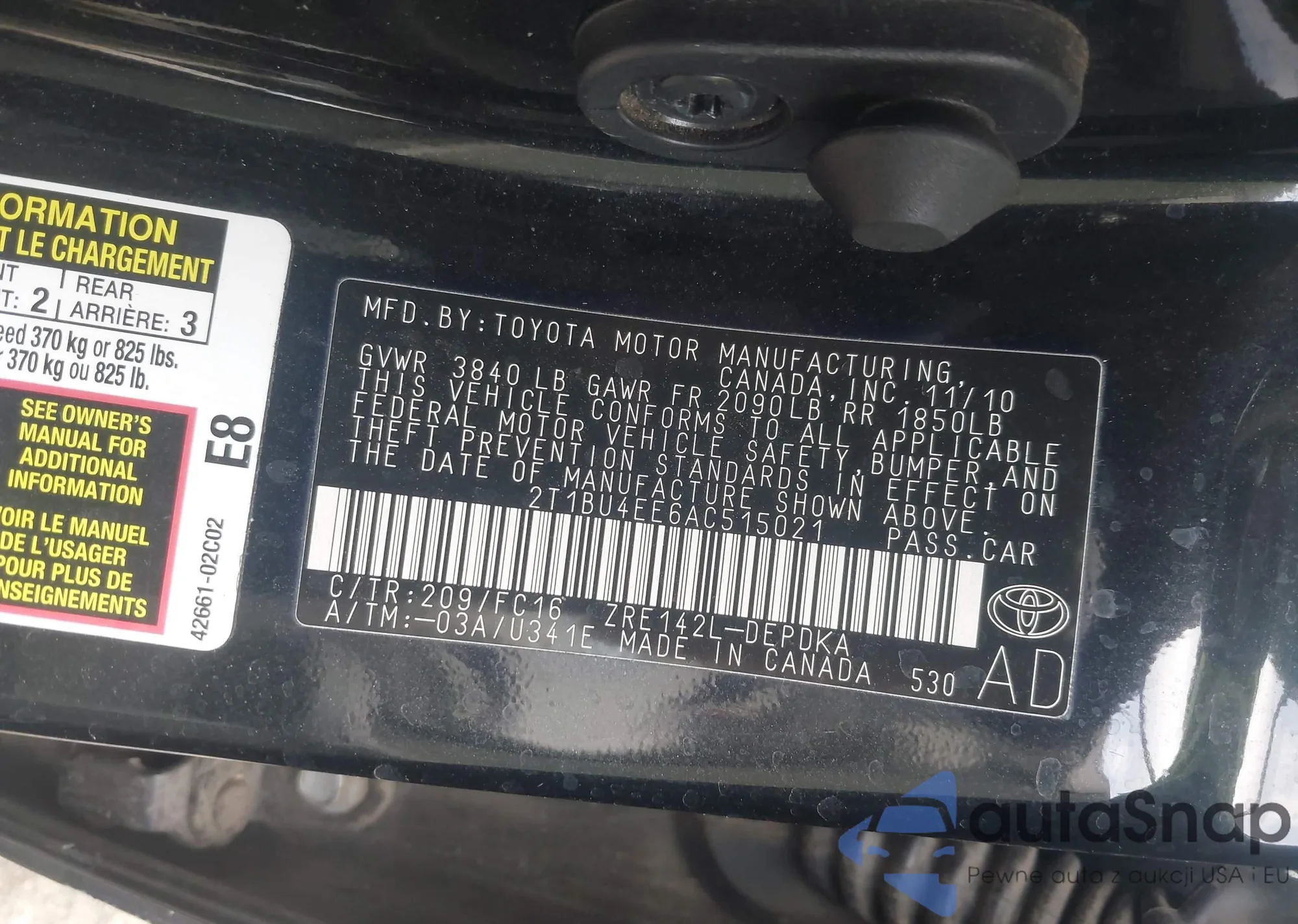 • VIN 1NXBU4EE2AZ336506