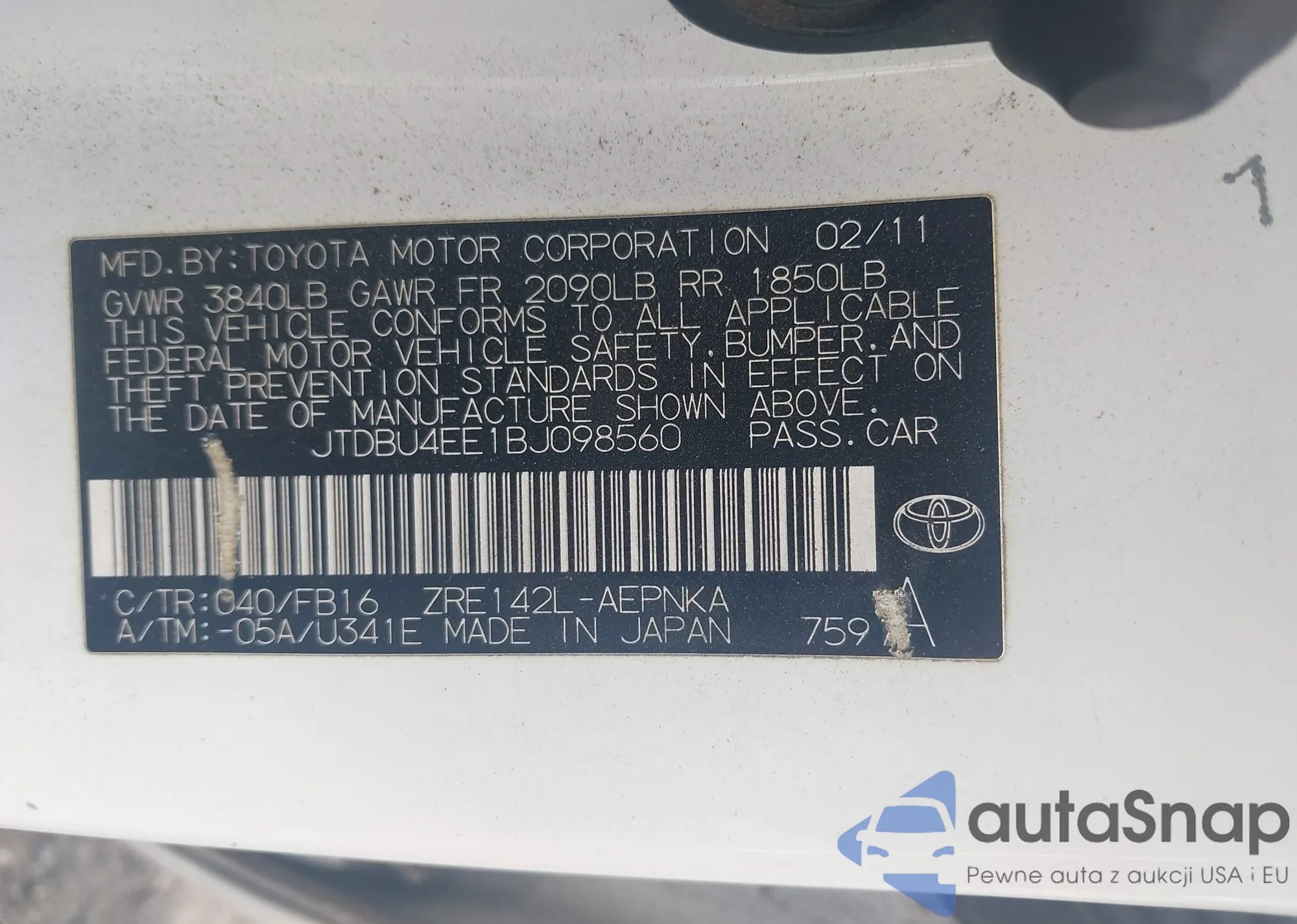• VIN JTDBU4EE1BJ098560