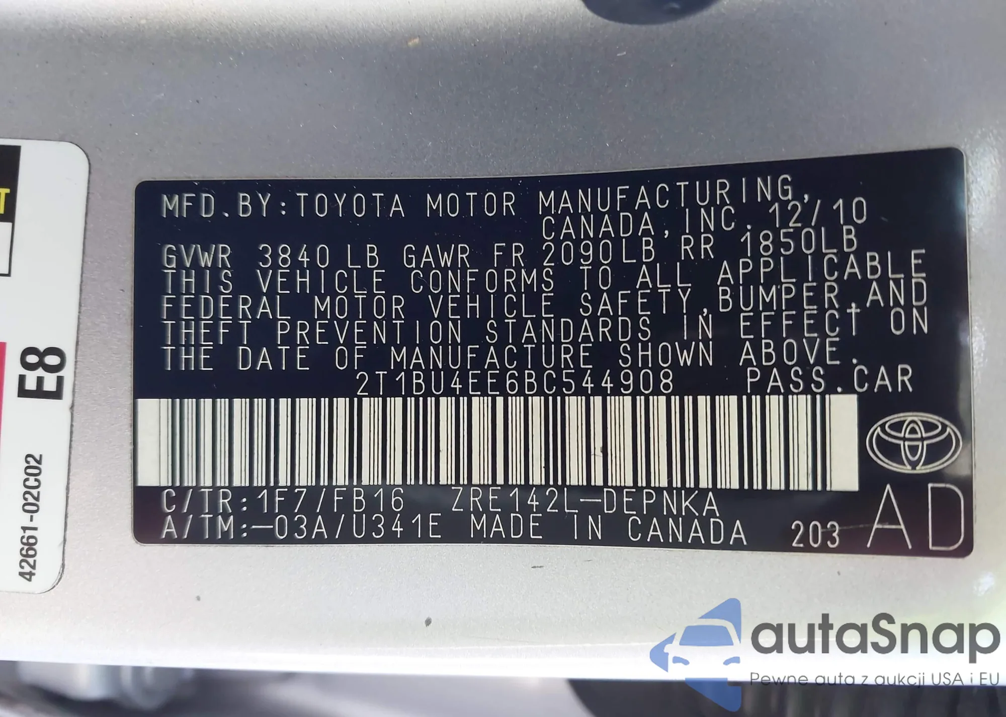 • VIN 2T1BU4EE6BC544908