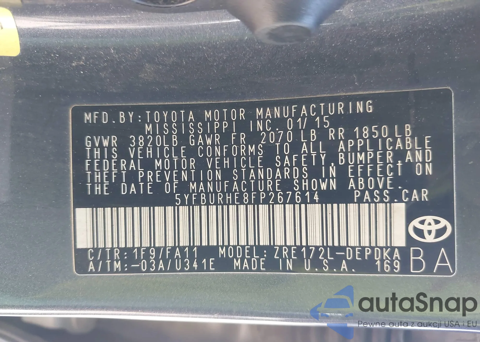 • VIN 5YFBURHE8FP267614