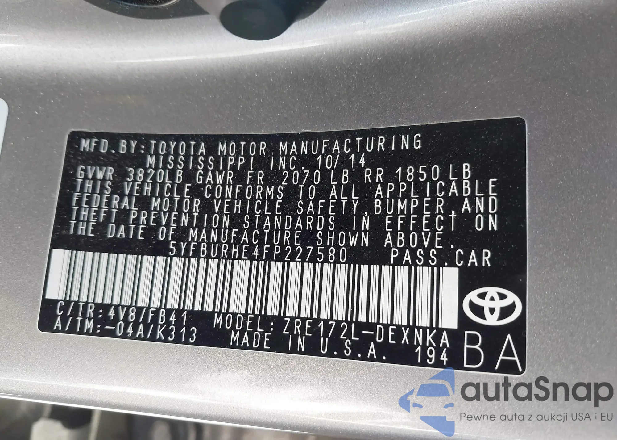 • VIN 5YFBURHE4FP227580
